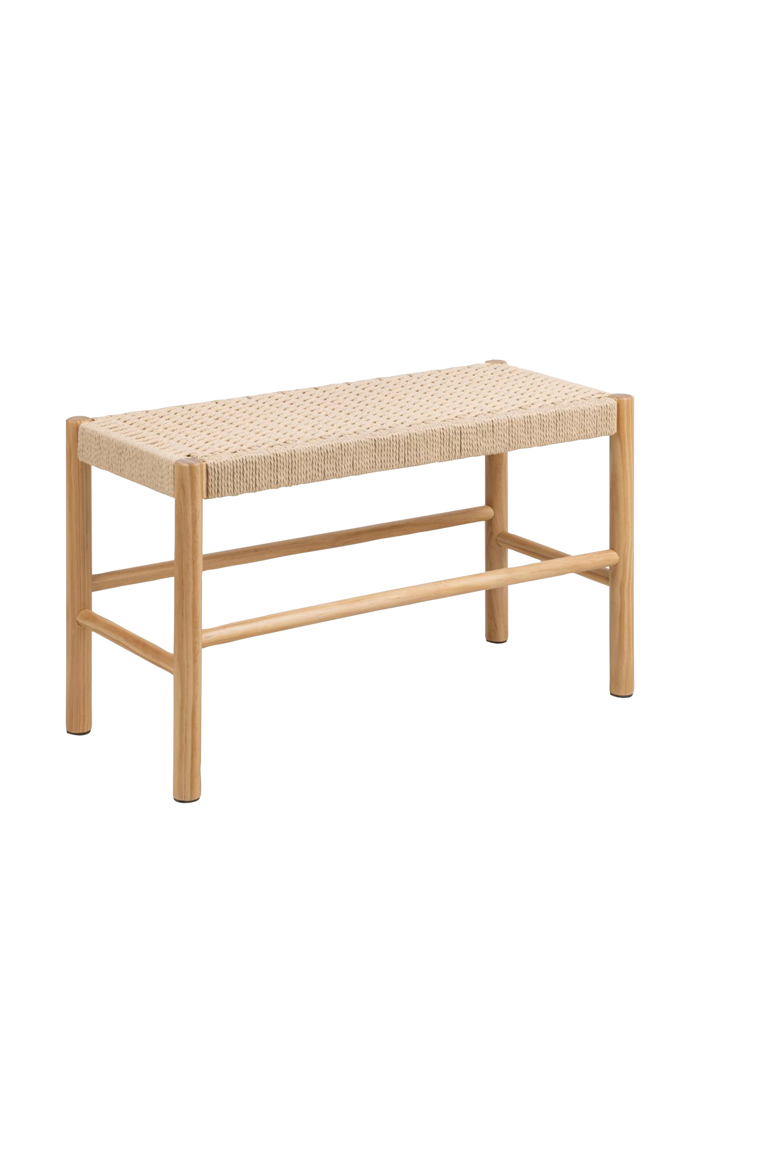 Klassiseen skandinaaviseen estetiikkaan palaava penkki vangitsee yksinkertaisten muotojen ja luonnonmateriaalien kauneuden. Istuin on kudottu taidokkaasti paperinarulla, joka luo kiehtovan kuvion, ja se syleilee lakatusta männystä valmistettua pyöreää runkoa. Monikäyttöinen penkki toimii hyvin sisustusesineenä tai kätevänä istumapaikkana kahdelle missä tahansa kodissa.