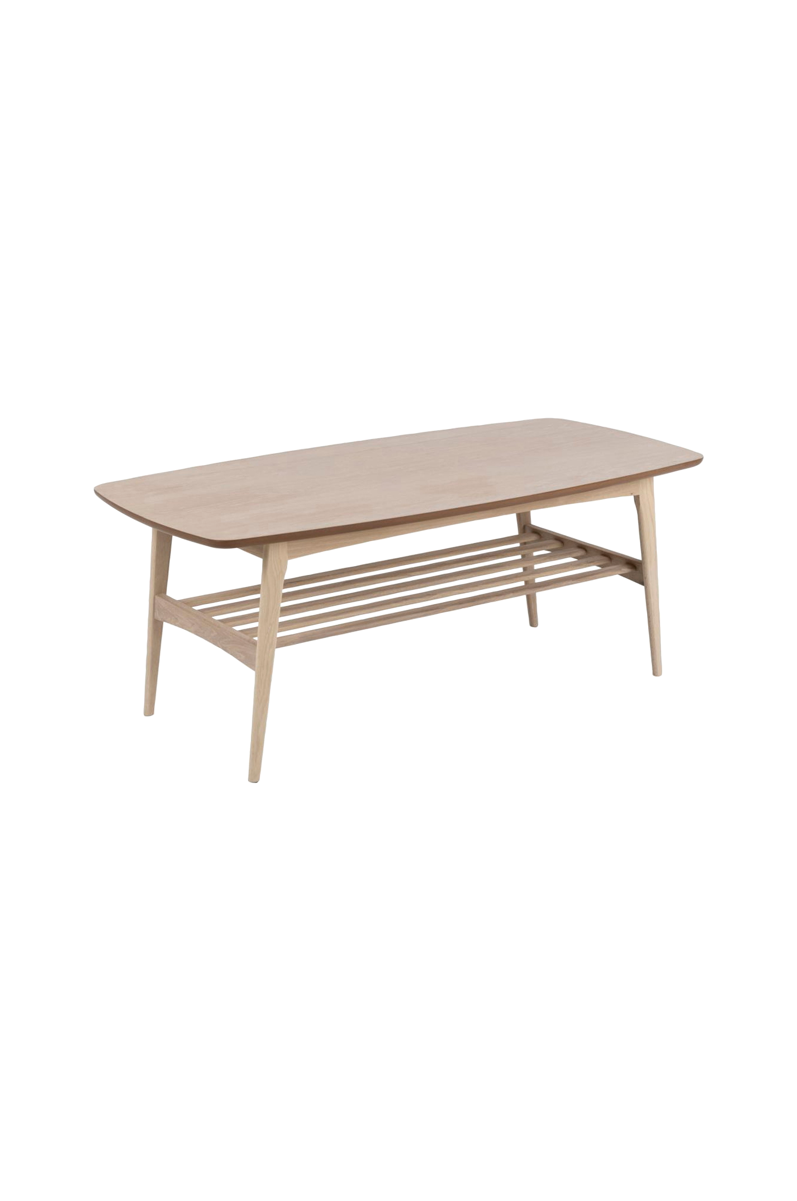 Woodstock suorakulmainen sohvapöytä, kansi valkoiseksi pigmentoitua öljyttyä tammiviilua, hylly ja jalusta valkoiseksi pigmentoitua öljyttyä tammea, 120x60x47 cm - Tämä sohvapöytä, joka on suunniteltu klassiseen skandinaaviseen tyyliin, on käsitelty valkoisella pigmentoidulla öljyllä puhtaan ulkonäön takaamiseksi. Pöytä on suorakaiteen muotoinen, ja sen tammiviilupinta, jossa on pyöristetyt kulmat, näyttää kutsuvalta. Kätevä alahylly tarjoaa tilaa suosikkilukemisellesi, ja kartiomaiset tammijalat täydentävät kokonaisestetiikkaa.