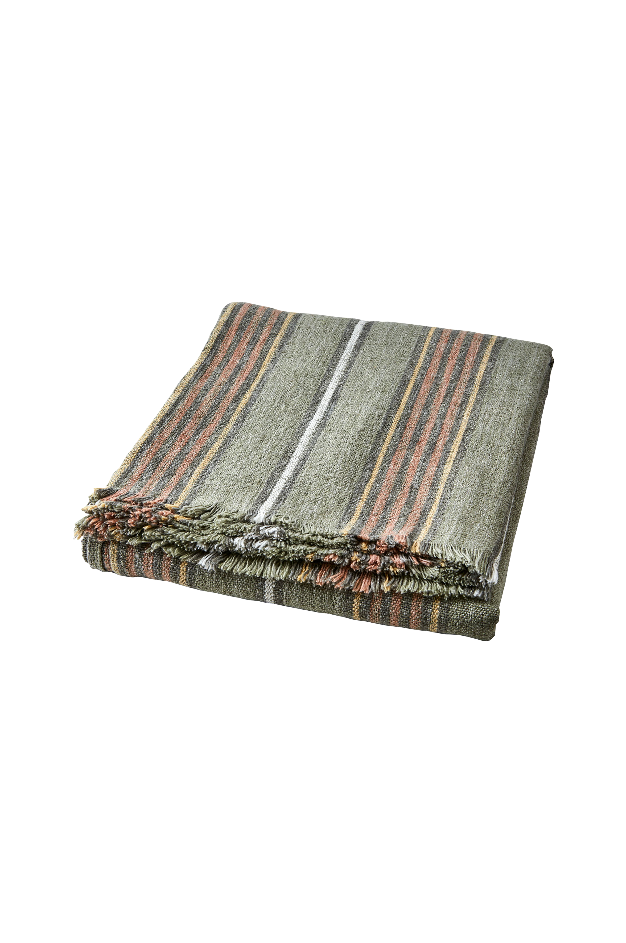 Tyylikäs raidallinen peitto, joka toimii myös pöytäliinana, pellavan ja puuvillan sekoitusta. Siinä on maalaismainen muotoilu, jossa on haalistuneet reunat ja maanläheiset sävyt. konepesu 30°.