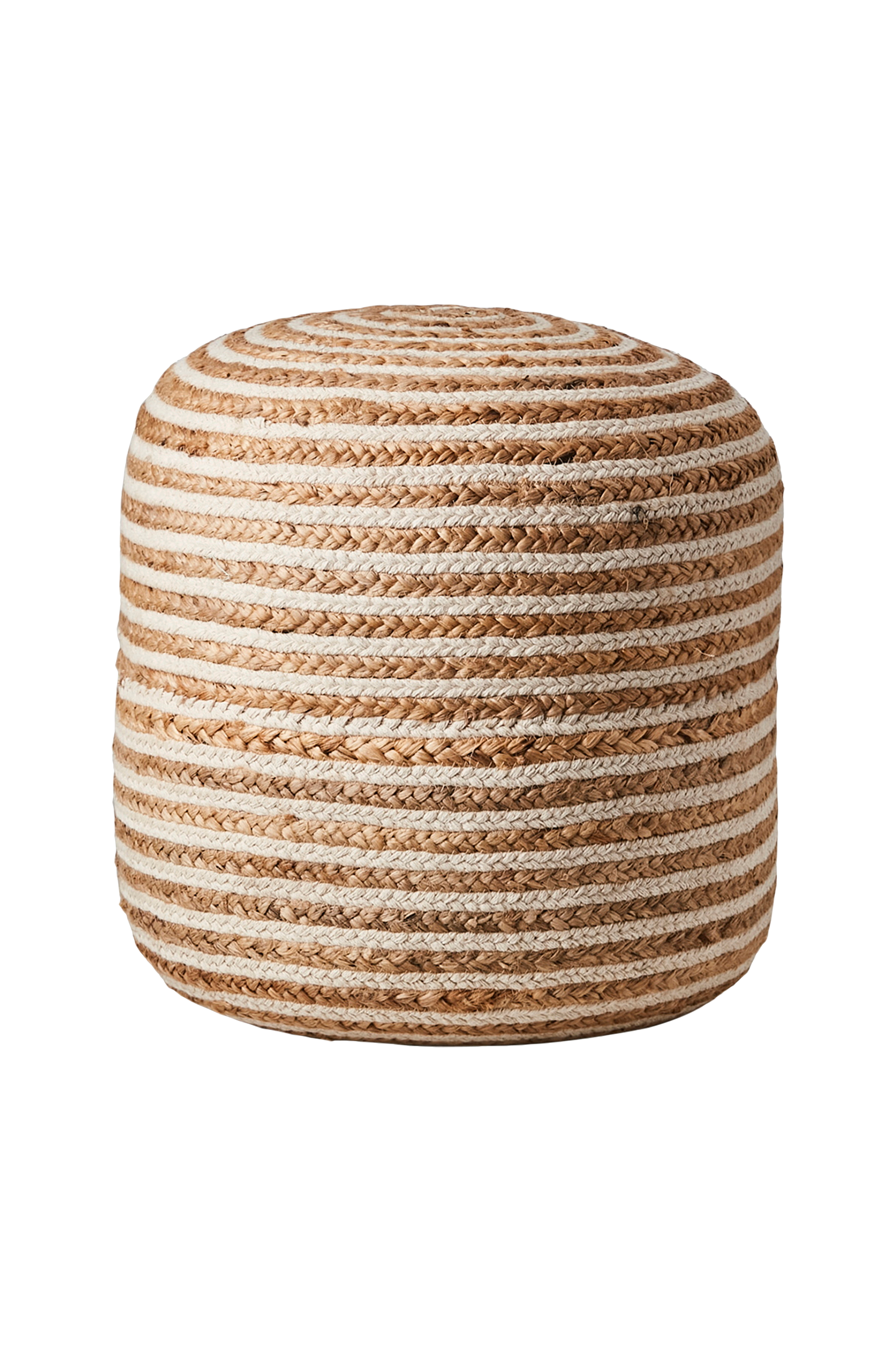 Käsin kudottu pouf kauniissa luonnonvärissä, joka sopii jokaiseen kotiin. Vain tahranpoisto.