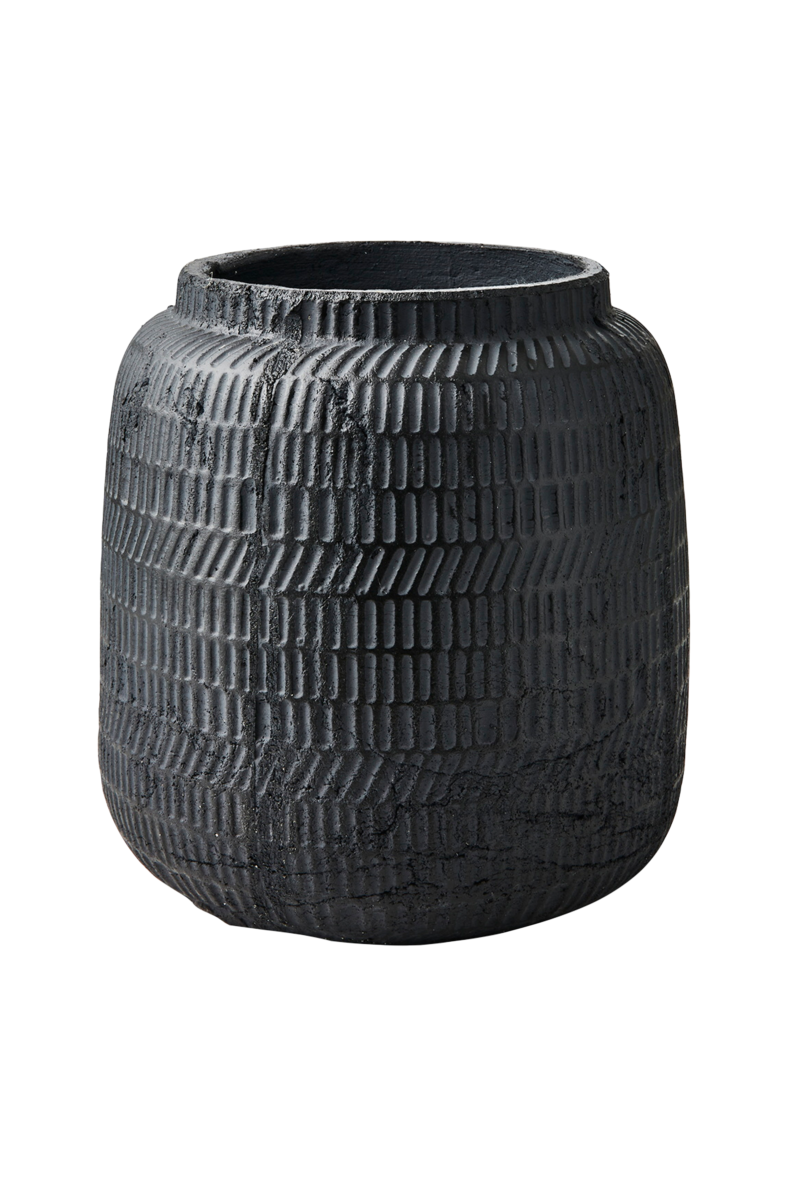 Suuri mattamusta terrakottaruukku, jossa on etninen raitakuvio koko ruukun ympärillä. Ruukun tumma väri yhdessä vihreän kasvin kanssa luo tyylikkään ja eloisan tunnelman. Kaunis sisustusdetalji, joka sopii hyvin useimpiin huoneisiin. Sijoita se mihin tahansa paikkaan ja ryhmittele se muiden erikorkuisten ruukkujen tai koristeiden kanssa luodaksesi kauniin katseenvangitsijan tai tyylikkään asetelman. Älä unohda laittaa kukkaruukun alle aluslautasta, jotta vältät tahrat pinnalla. Sisämitat 16 cm.