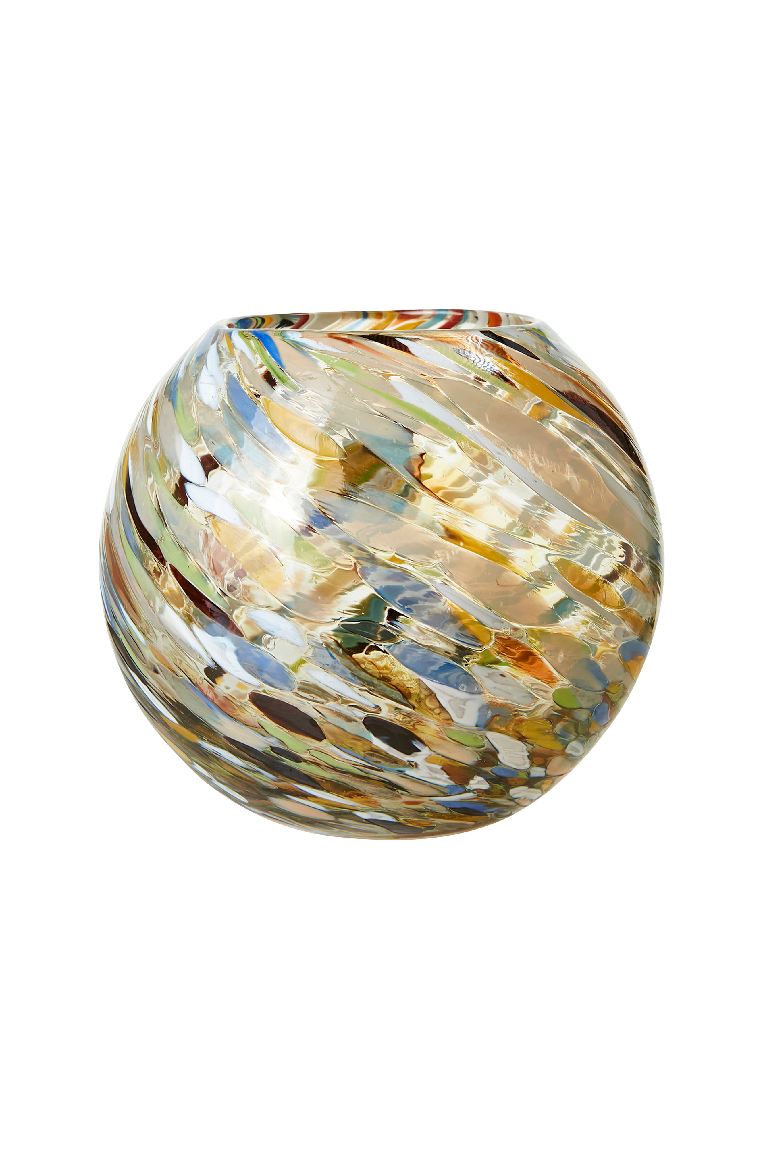 Suuhun puhallettu. Kuplia ja epätasaisuuksia voi esiintyä. Värin voimakkuus voi vaihdella.