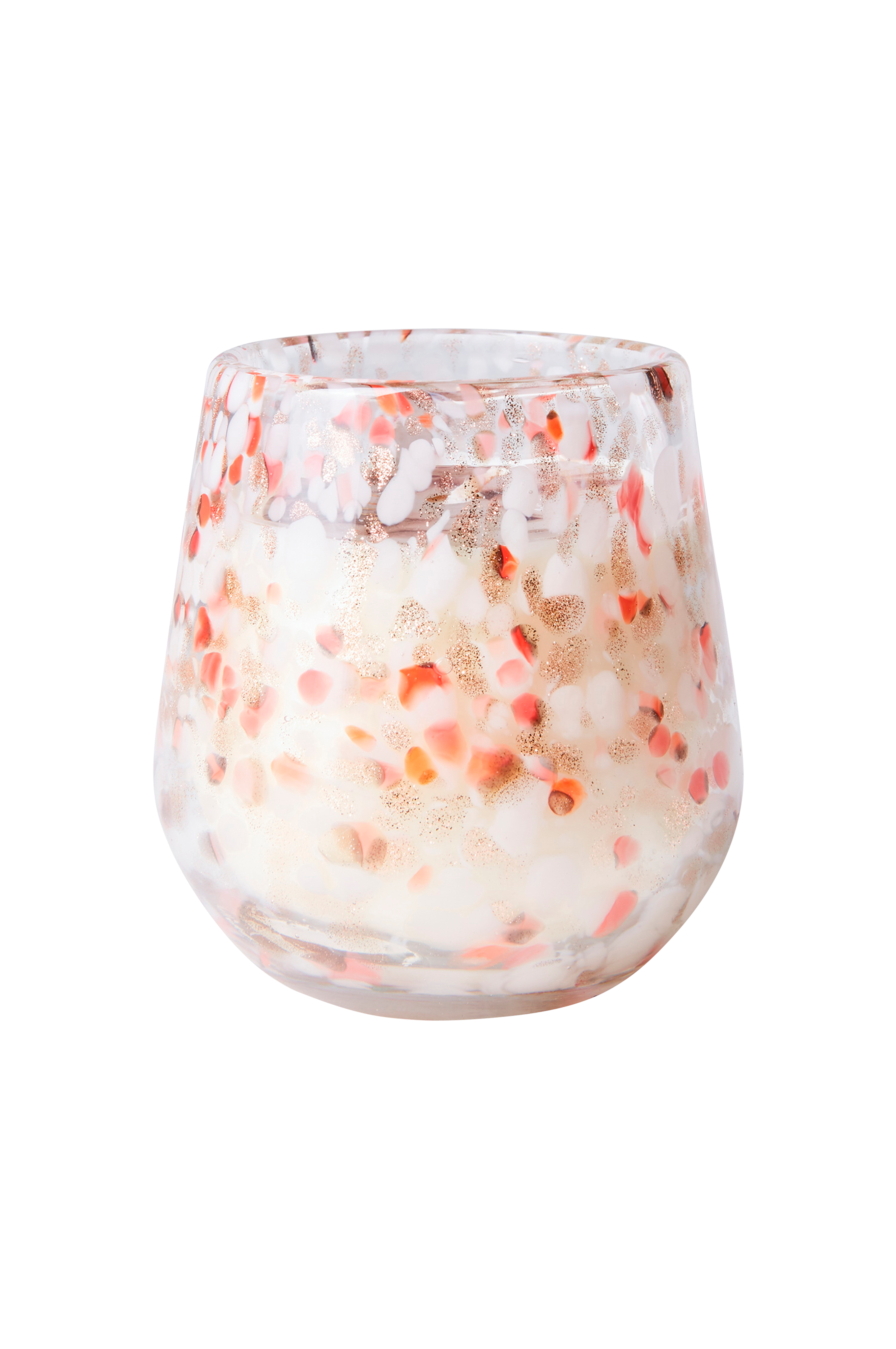 Soijavahasta valmistettu tuoksukynttilä, jossa on synteettisiä tuoksuja. Lasiastia on suupuhallettu, joten kuplia ja epätasaisuuksia voi esiintyä . Palaa 48 tuntia.