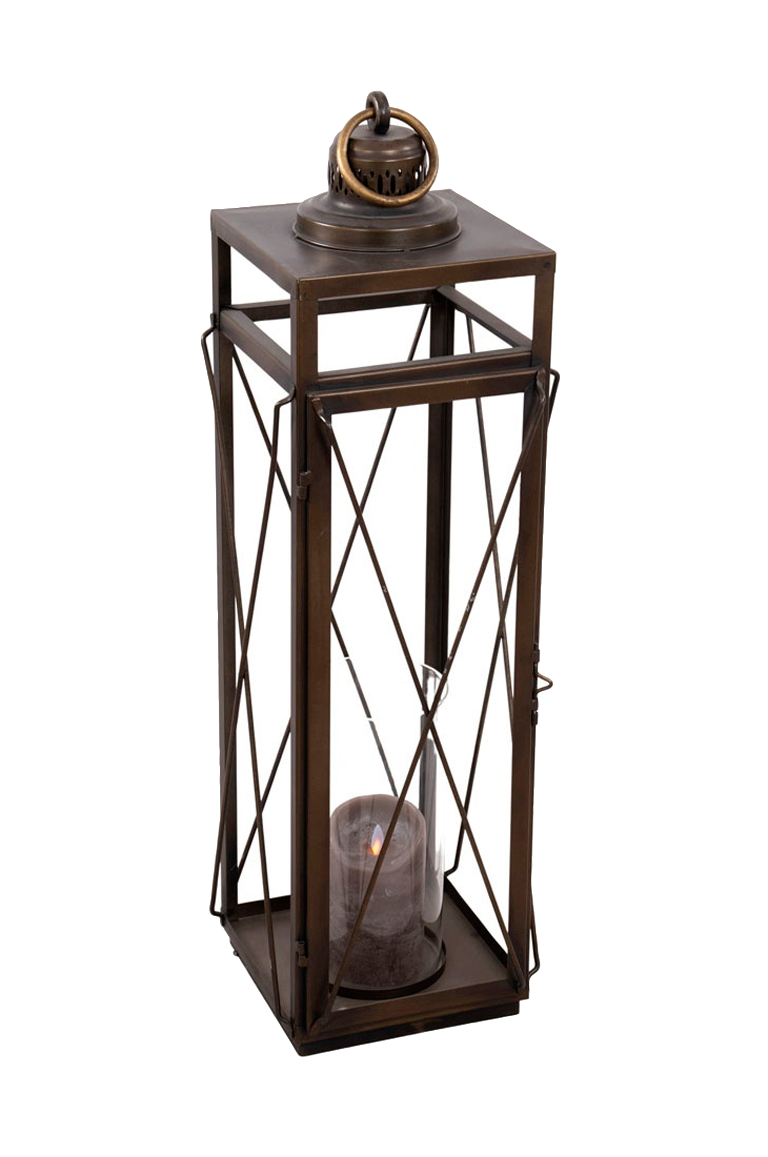 Sukella antiikin eleganssin ja lumoavan loiston maailmaan upean pronssiviimeistellyn, metallista ja lasista valmistetun lyhdyn myötä. Majesteettinen 75 cm korkea ja 24 cm leveä ja syvä lyhty on ylivertaisen kaunis ja näyttävä. Materiaali: rautaa ja lasia