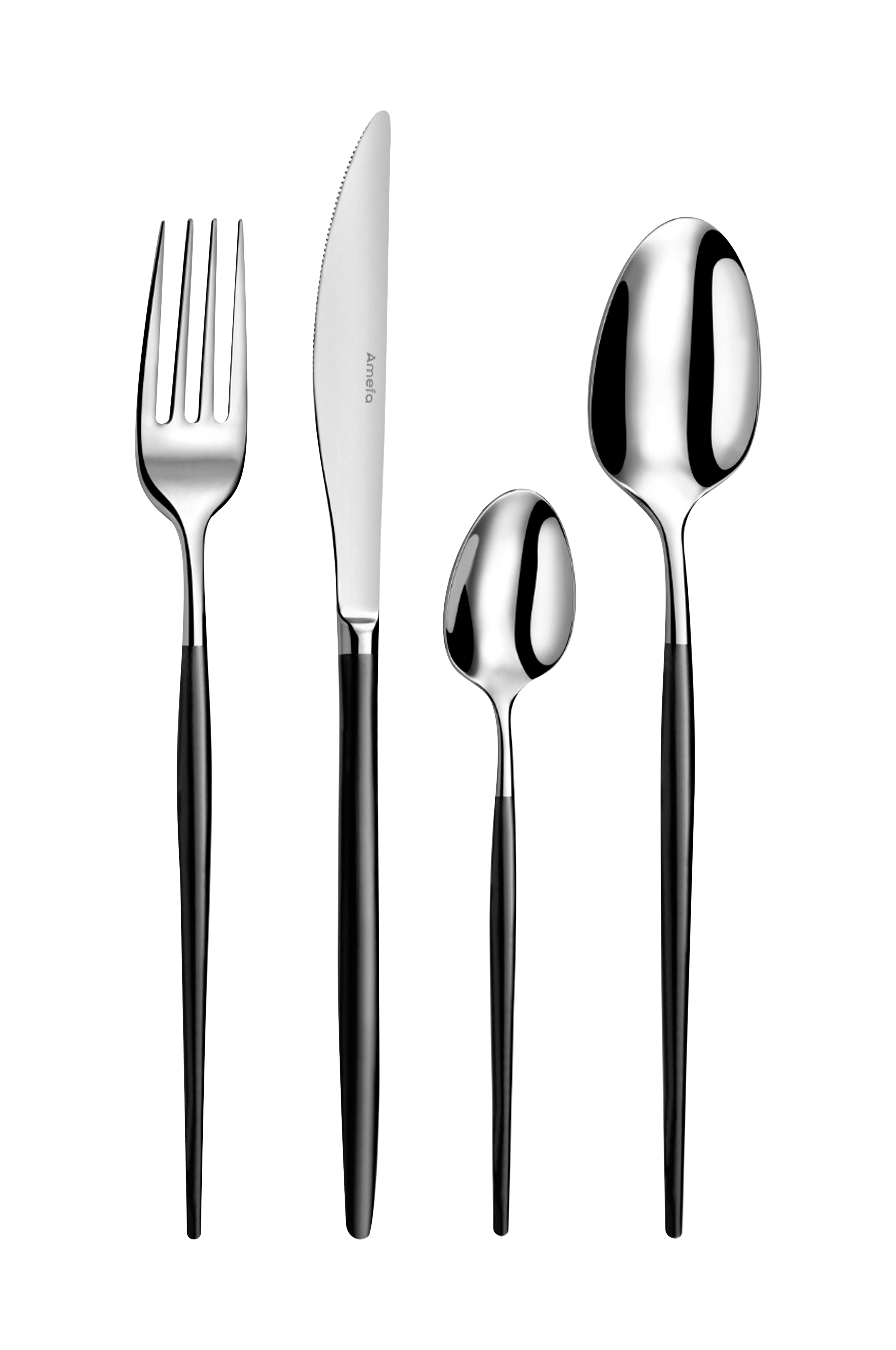 Kaunis ruokailuvälinesarja tunnetulta amefalta Soprano-sarjassa. Ohuet ja minimalistiset ruokailuvälineet, jotka tuovat pöytäsi kattaukseen kultaista särmää.