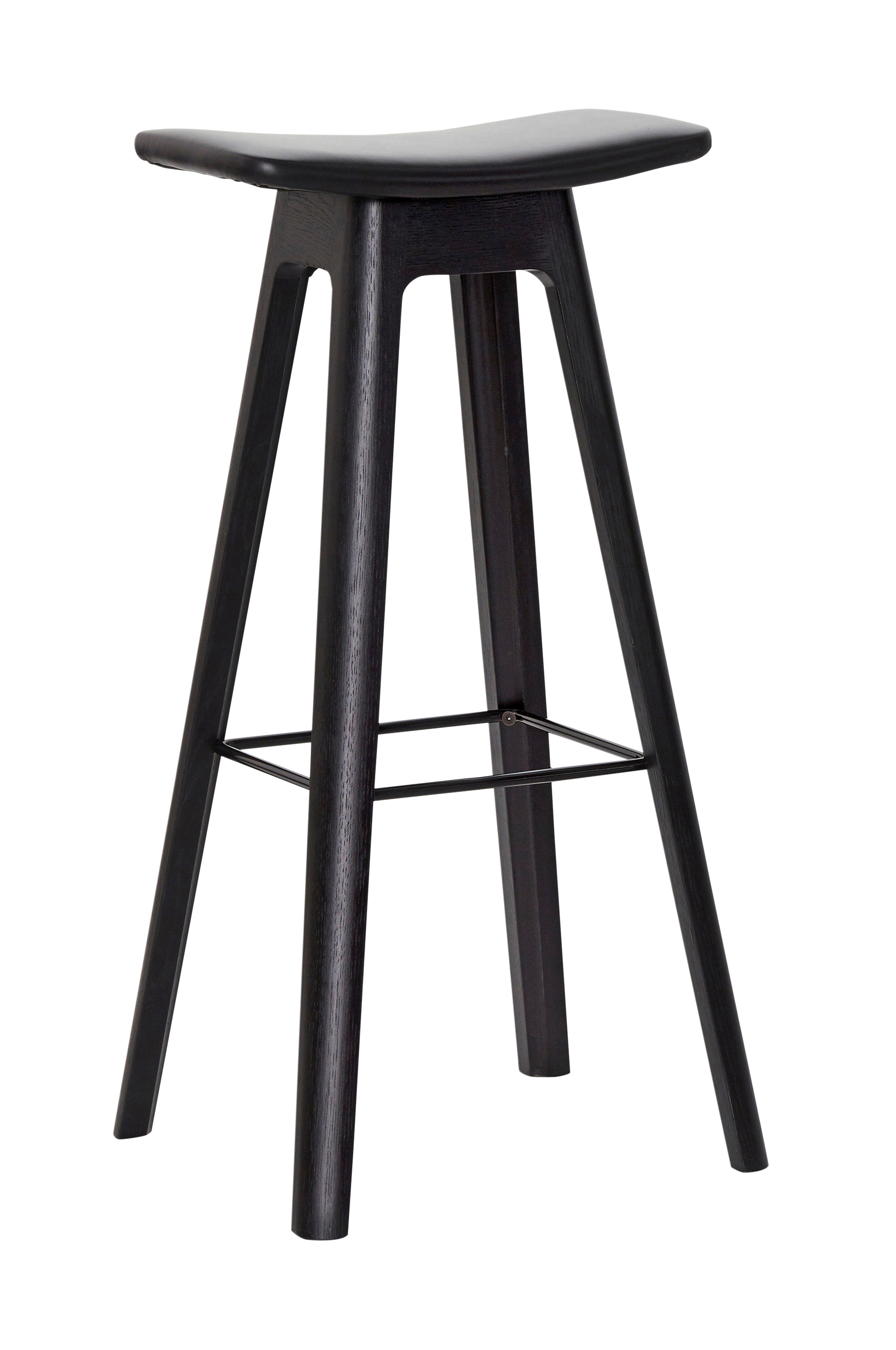 Jakkarassa on ihana keveys ja pehmeä visuaalinen tyyli. Se on tyylikäs ja erittäin tyylikkäästi tehty, ja sitä voidaan käyttää monissa yhteyksissä. Kaunis puujalusta on mustaksi maalattua tammea ja istuinosa mustaa pu-nahkaa. Istuimen korkeus 67 cm.