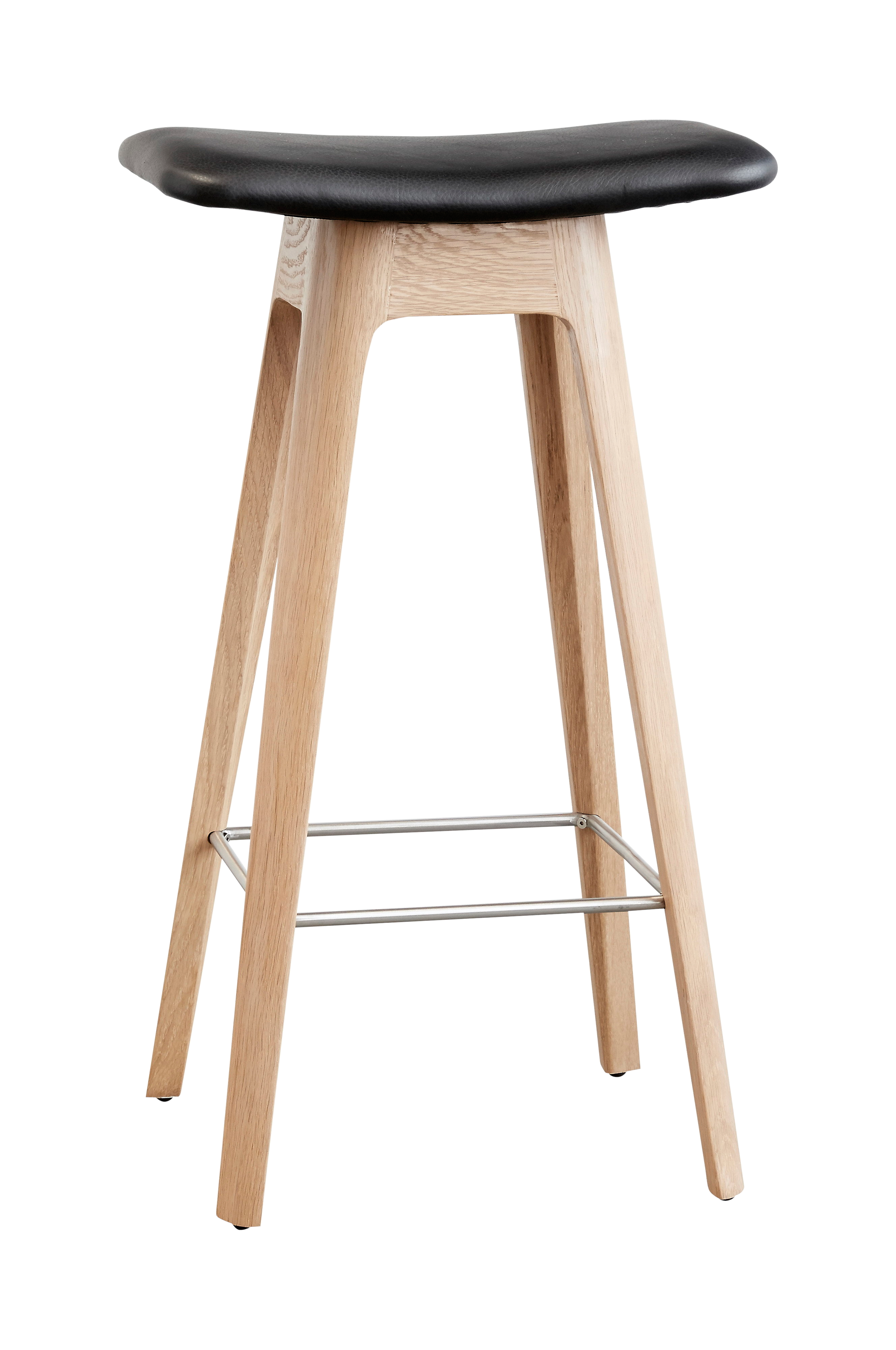 Jakkarassa on ihana keveys ja pehmeä visuaalinen tyyli. Se on tyylikäs ja erittäin tyylikkäästi tehty, ja sitä voidaan käyttää monissa yhteyksissä. Kaunis puujalusta on mustaksi maalattua tammea ja istuinosa mustaa pu-nahkaa. Istuimen korkeus 67 cm.