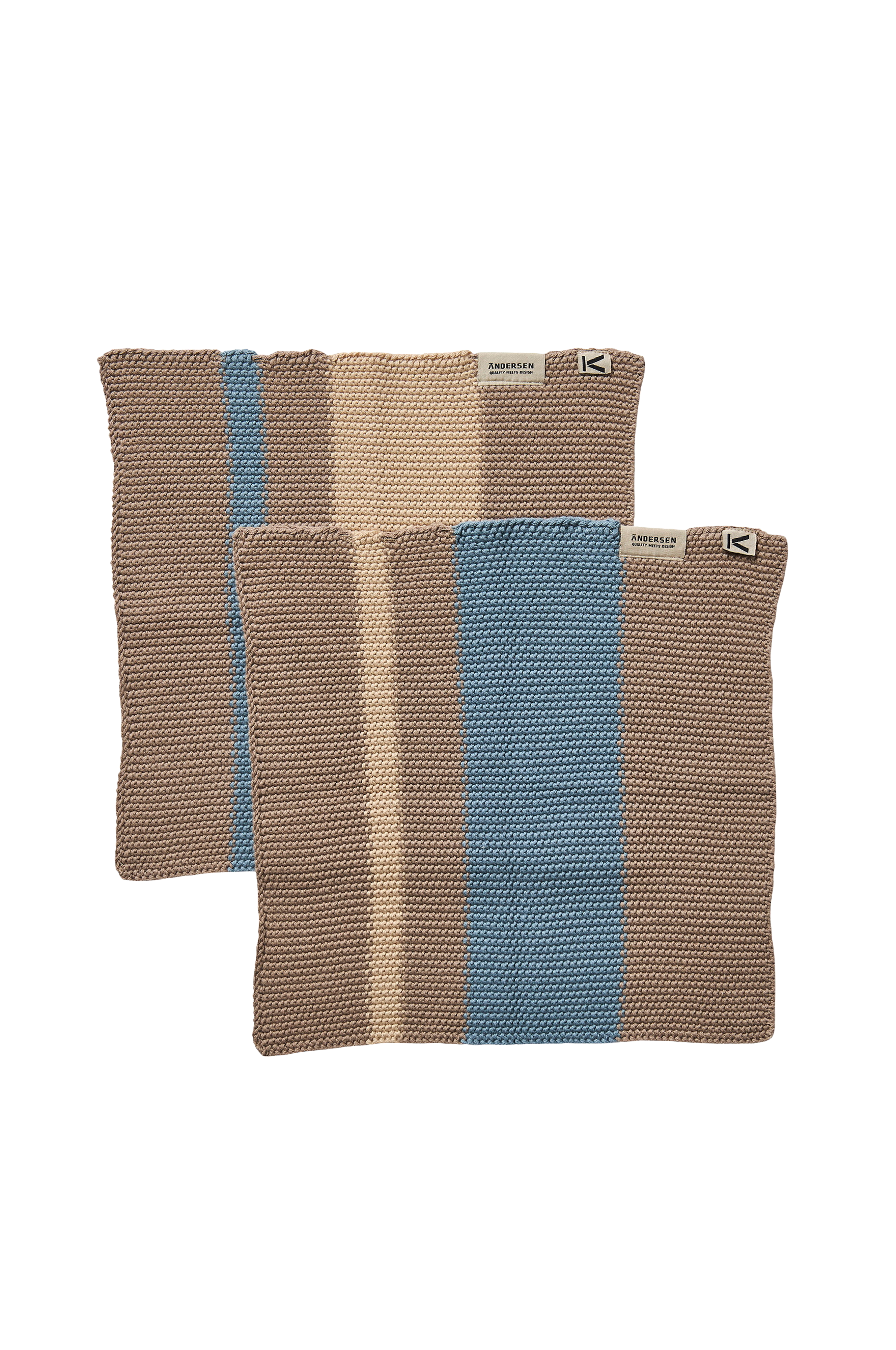 Andersen-tiskirätit on valmistettu 100 % pehmeästä puuvillaneuloksesta ilman mikrokuituja tai muovia, mikä tekee niistä erinomaisen valinnan keittiöösi. Andersen-tiskirätit ovat täydellinen lisä keittiötekstiileihisi. Vaaleat värit ja yksinkertaiset raidat tuovat luonnetta ja sopivat saumattomasti mihin tahansa keittiöön - pieni yksityiskohta, joka tekee arjesta hieman miellyttävämmän. Käytä niitä yhdessä Andersen-keittiöpyyhkeiden tai astiapyyhkeiden kanssa luodaksesi harmoniaa keittiön sisustukseen. Andersen-tiskirätit on suunniteltu päivittäiseen käyttöön ja kestävät toistuvat pesut. Tiskirätit myydään 2 kappaleen sarjoina. Tiskirätit eivät ole identtisiä. Vinkki: Hygieniasyistä on suositeltavaa vaihtaa tiskirätit päivittäin. Hoito-ohjeet: Konepesu 60 °C. Pese samanväristen kanssa. Älä kuivata kuivausrummussa. Koko: 27 x 27 cm. Suunnittelu: Kira Usbeck.