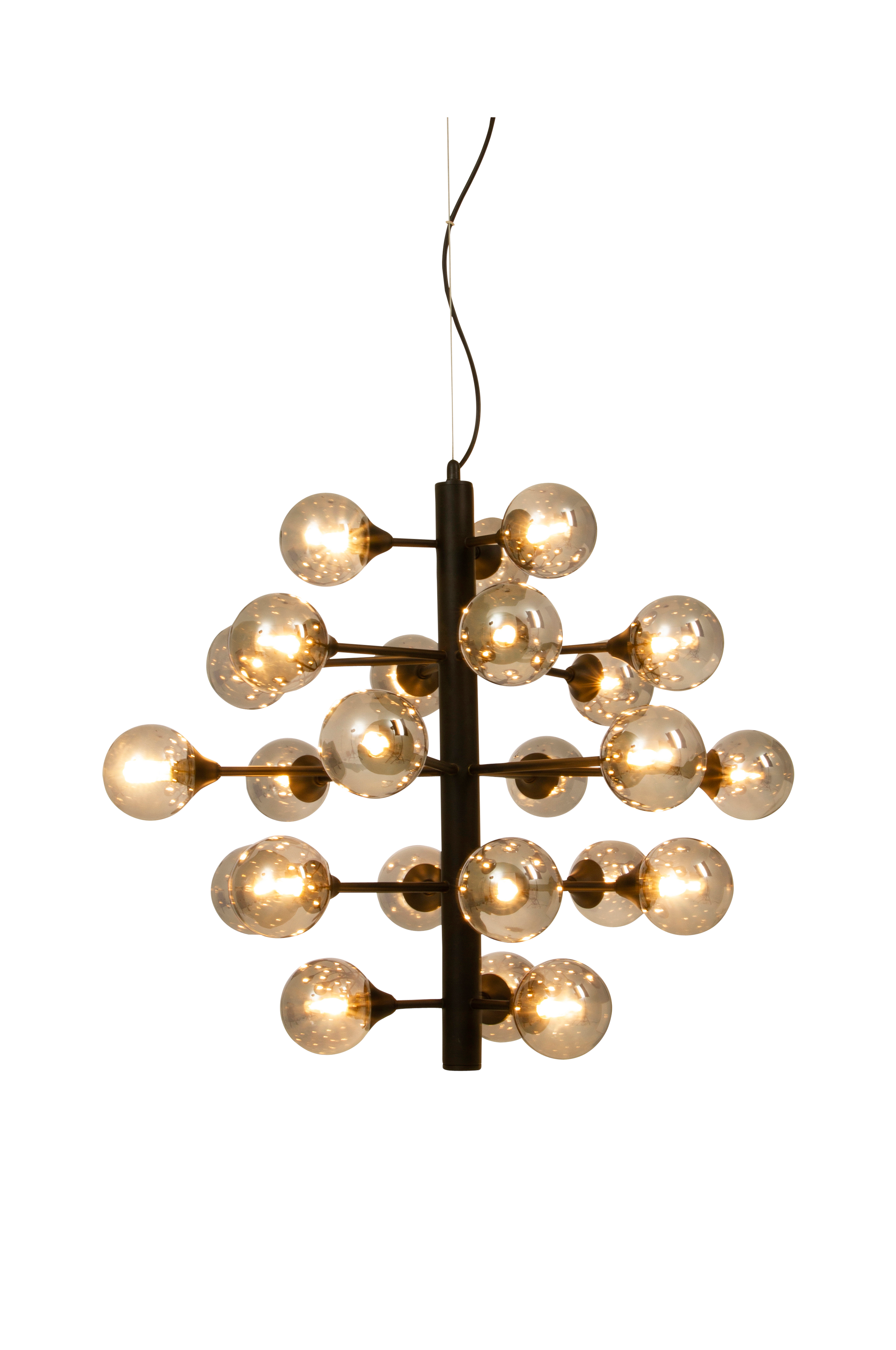 Cosmos-kattovalaisin. Valaisimen ensisijainen materiaali on metalli/lasi. 24 x G9-lampunkanta. Valonlähde enintään 24 x 25 W. Valonlähteet eivät sisälly toimitukseen. Kattokuppi metallia. Valaisin asennetaan ripustuskoukun avulla. Valaisin kytketään riviliittimeen. Pistoke asennettavissa. IP20-luokitus.