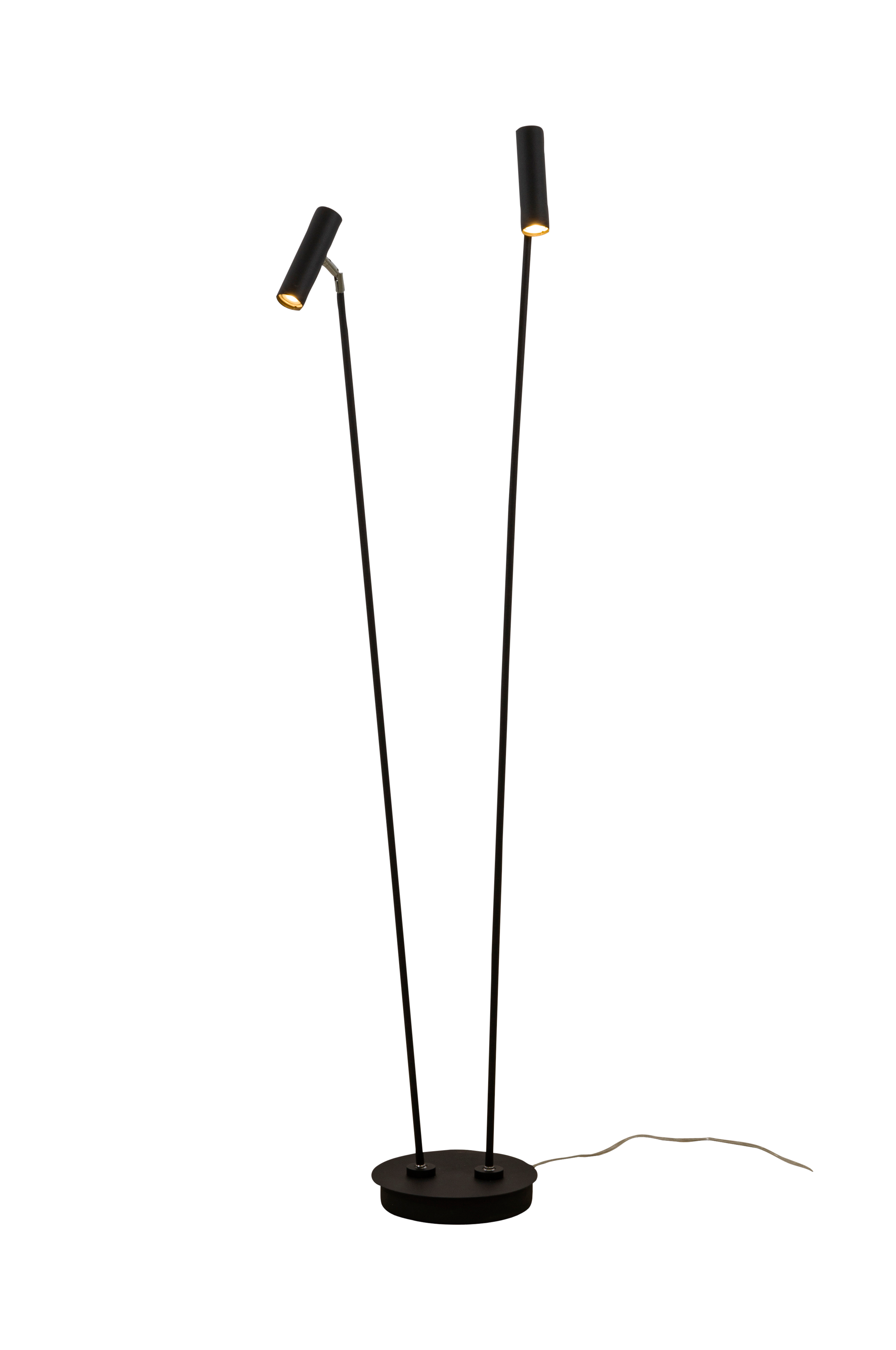 Kaksiosainen Artic-lattiavalaisin valkoiseksi maalattua metallia, yksityiskohdat kromia. Integroidut LED-valonlähteet antavat miellyttävän lämpimän valkoisen valon. Valaisin sytytetään ja sammutetaan valaisimissa olevilla himmentimillä. Säädettävät varjostimet ja jalka.