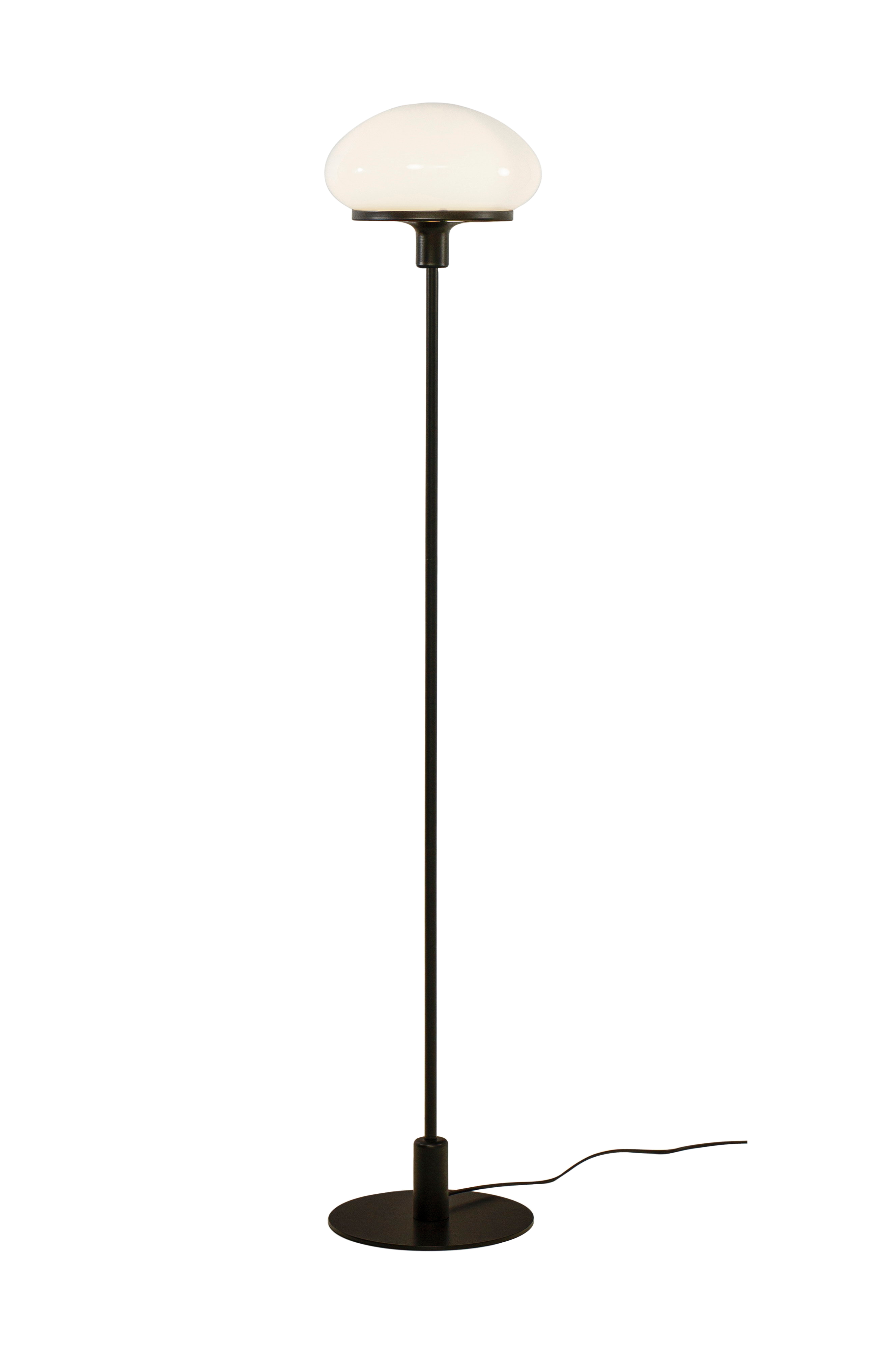 New august tyylikkäästi muotoiltu lattiavalaisin, jossa on metallijalusta ja kiiltävä lasi, joka antaa pehmeää ja miellyttävää valoa. Siitä tulee kaunis sisustuksen yksityiskohta, joka luo viihtyisän tunnelman olohuoneeseen tai eteiseen.