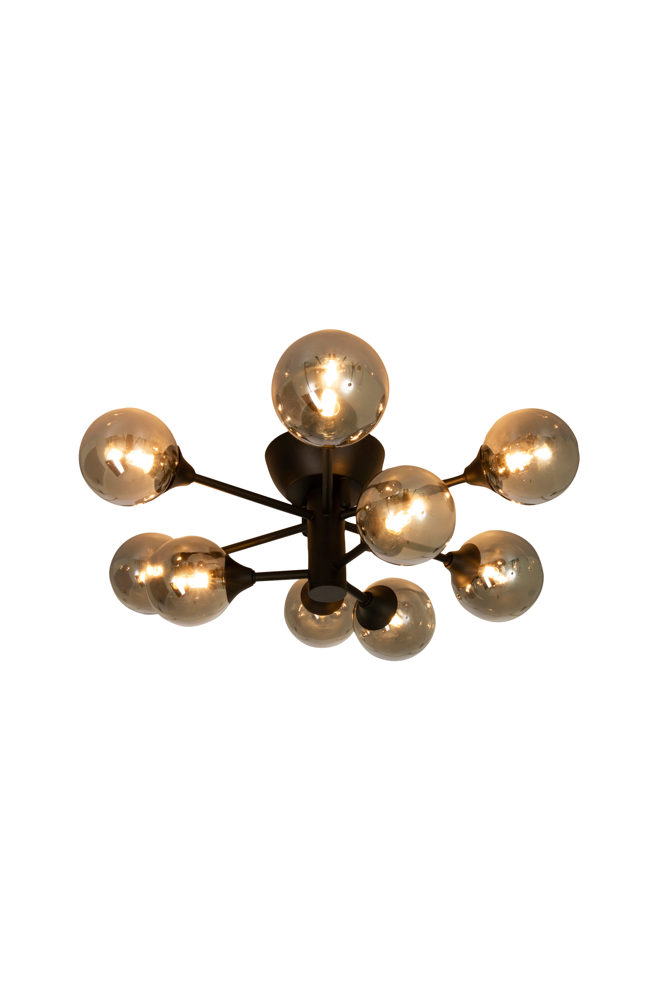 Musta/savunharmaa Cosmos-plafondi. Valaisimen ensisijainen materiaali on metalli/lasi. 9 x G9-lampunkanta. Valonlähde enintään 9 x 25 W. Valonlähteet eivät sisälly toimitukseen. Asennetaan ripustuskoukun avulla. Valaisin kytketään riviliittimeen. Pistoke asennettavissa. IP20-luokitus.