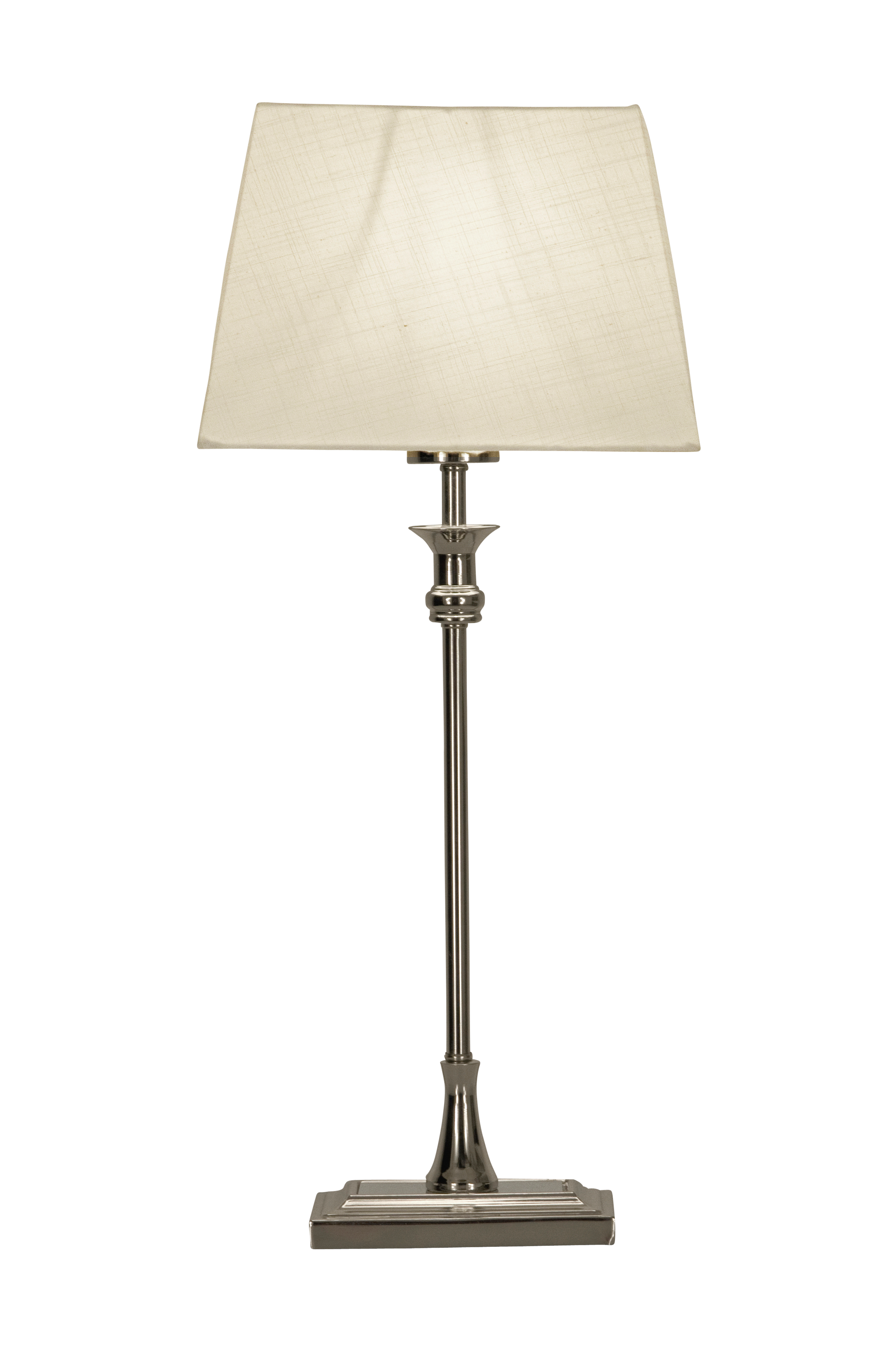 ANETTE-pöytävalaisin, hopea/valkoinen. Klassinen pöytävalaisin, jossa display ja virtakytkin johdossa. Materiaali: metallia ja kangasta