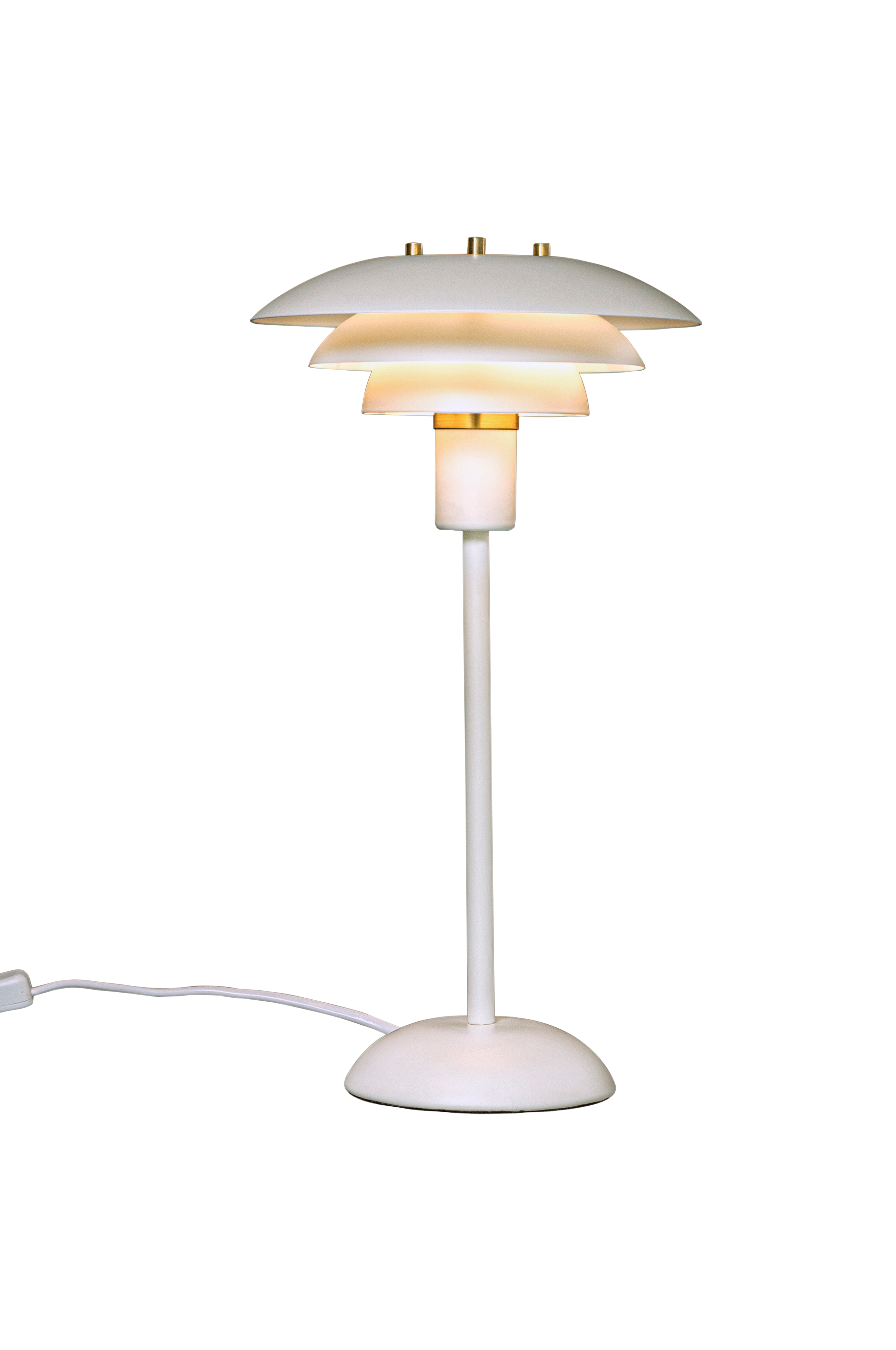 Epsilon pöytävalaisimessa on klassinen muotoilu, jossa on kolmitasoiset metallivarjostimet, jotka levittävät valoa kauniisti ja estävät häikäisyä. Epsilon toimitetaan kaksinkertaisilla koristerenkailla ja -nupeilla, joista voit valita kromin tai mattapintaisen messingin riippuen siitä, mikä sopii parhaiten kotiisi. Epsilon pöytävalaisin voidaan yhdistää myös muiden epsilon -tuoteperheen valaisimien kanssa.
