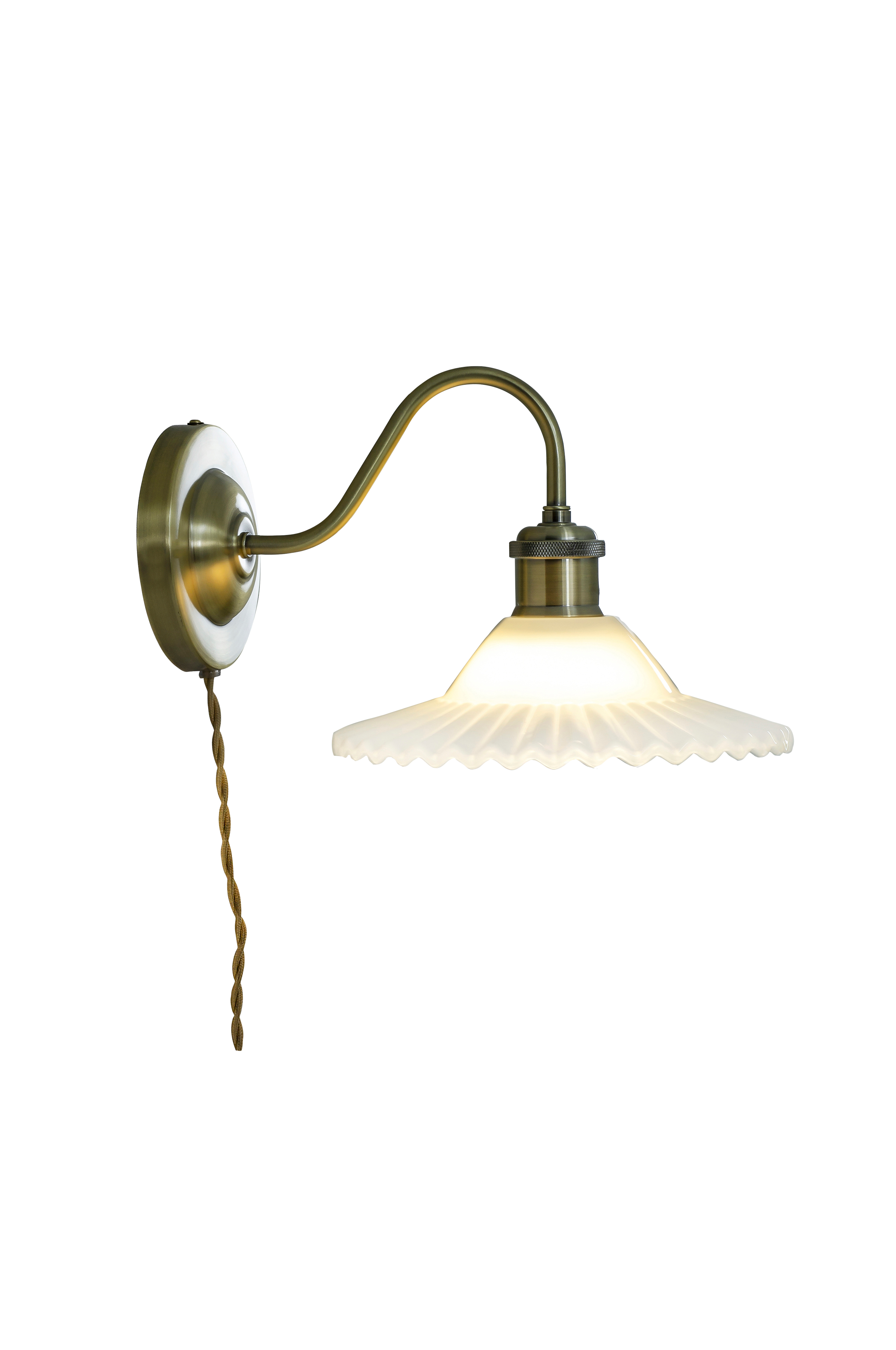 Silvia seinävalaisin romanttiseen vintage-tyyliin on kaunis sisustuksen yksityiskohta, joka sopii sekä klassiseen, maalaismaiseen että moderniin kotiin. Sopii täydellisesti useimpiin huoneisiin ja luo pehmeää, koristeellista valoa, joka edistää kutsuvaa tunnelmaa. Metallia ja valkoista lasia oleva varjostin, jonka alareunassa on kaunis, röyhelöinen reuna. Kierretty tekstiilijohto viimeistelee ihanan vintage-ilmeen.