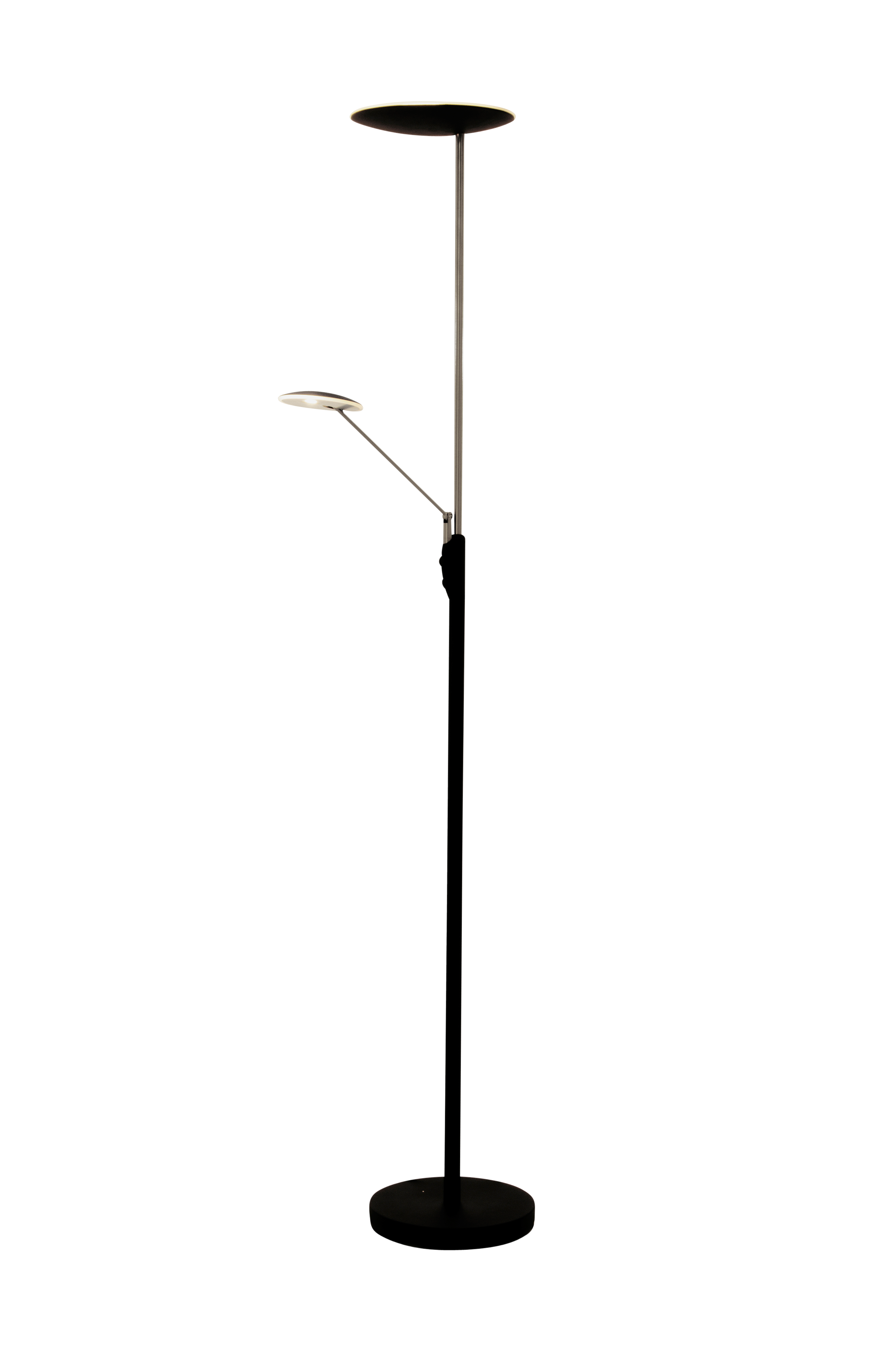 Uplight-lattiavalaisin metallia. Valaisimessa on 2 himmennintä. Integroidut LED-valonlähteet.