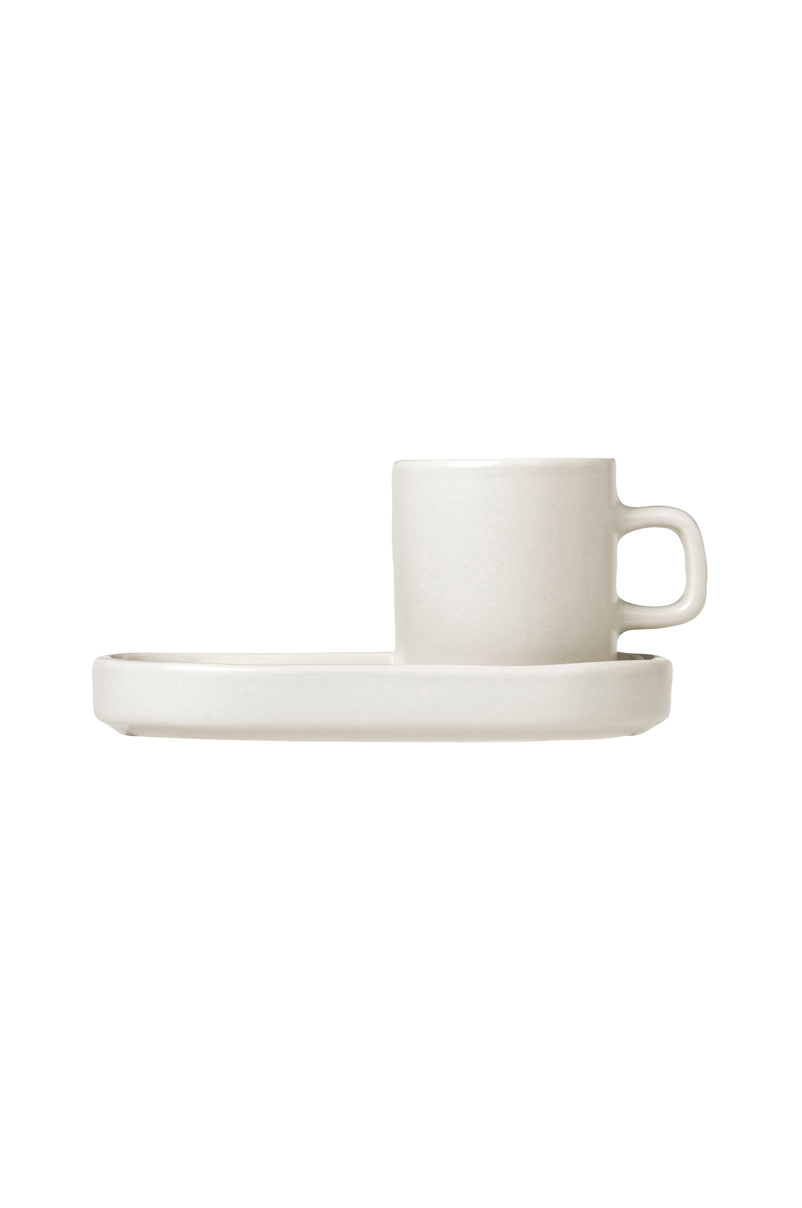 Setti, johon kuuluu kaksi espressokuppia aluslautasineen lasitettua keramiikkaa. Blomus-tuotemerkin PILAR-astiasarja tarjoaa koko kattauksen trendikkäitä värejä ja kestäviä ajattomia materiaaleja. PILAR-sarjan on suunnitellut Nina Thöming saksalaisesta Flöz Design -muotoilutoimistosta.