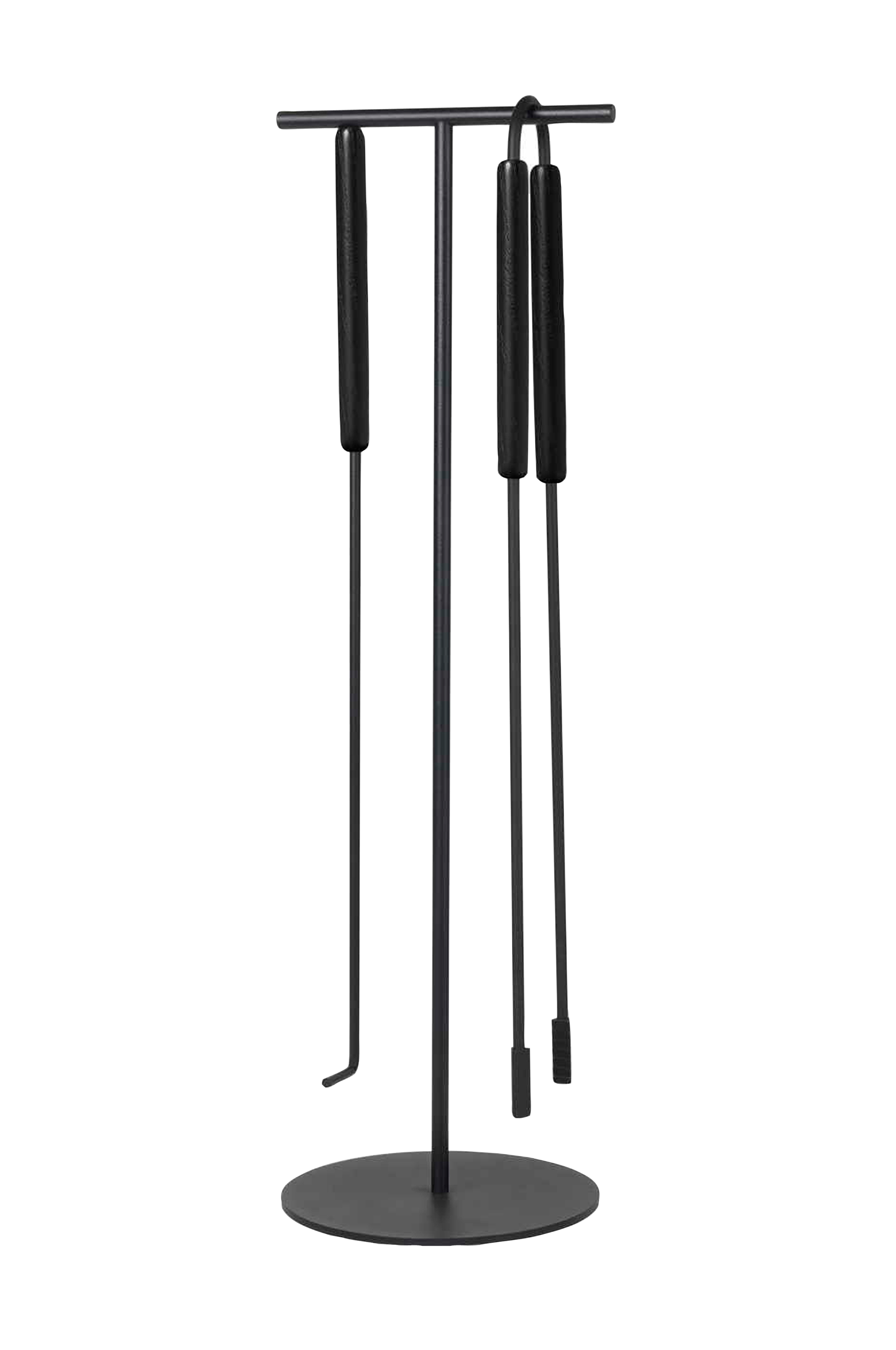Takkavälineet, joissa on kolme osaa: teline, hiilihanko ja pihdit. Suunnittelija kaschkasch. ASHI on japaniksi ruoko, ja tämä kauniisti muotoiltu teline on suunniteltu muistuttamaan huojuvaa ruokoa. Tammikahvassa on magneetti, joka pitää työkalut paikallaan jauhemaalattua terästä olevassa telineessä. ASHI-mallisto sisältää useita versioita kaikenlaisiin kamiinoihin, ja antaa mukavan ja lämpimän tunnelman.
