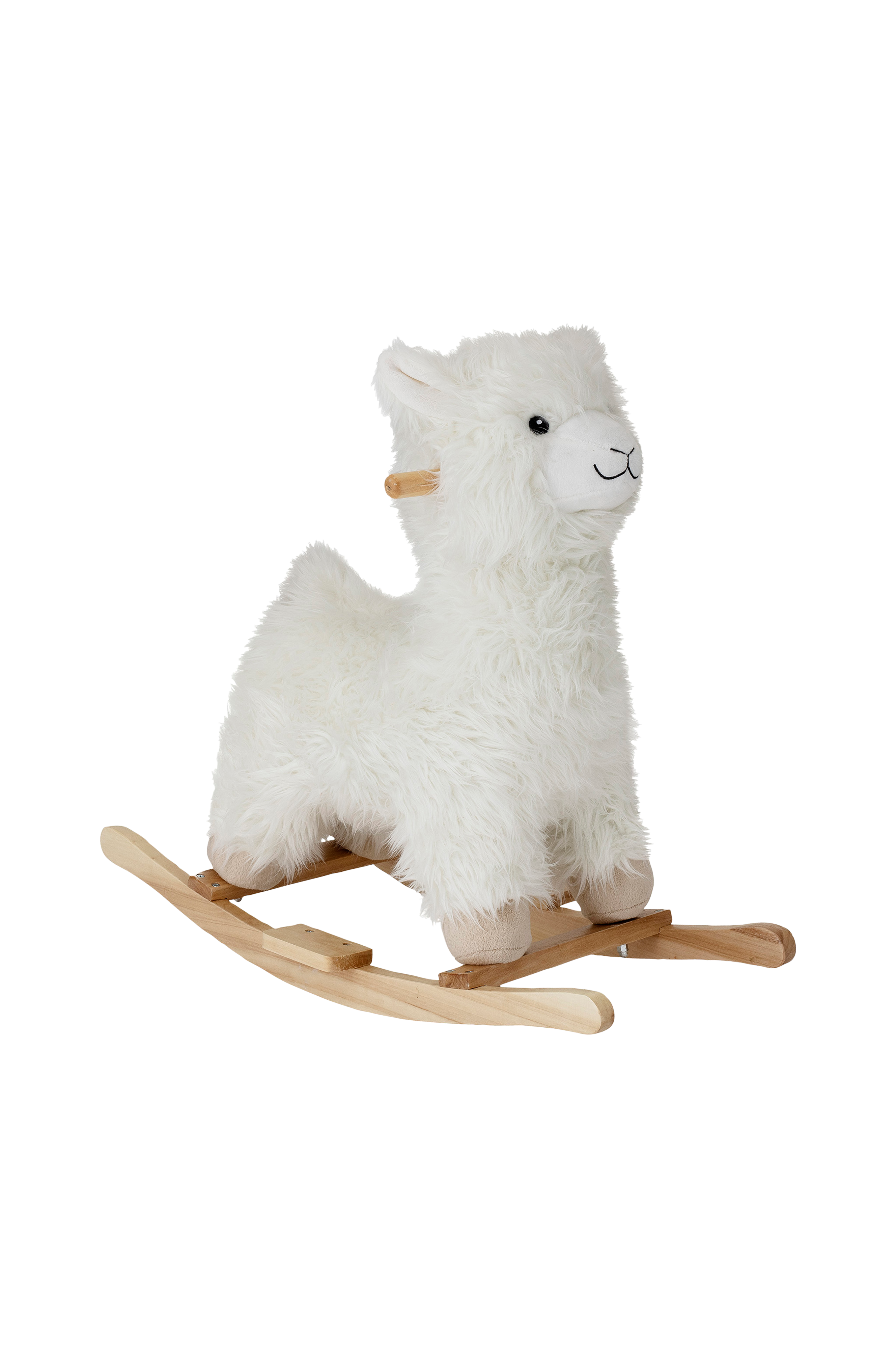 Bloomingville Mini. Keinulaama polyesteriä ja puuta. Mitat: Korkeus 45, pituus 65 ja leveys 25 cm.