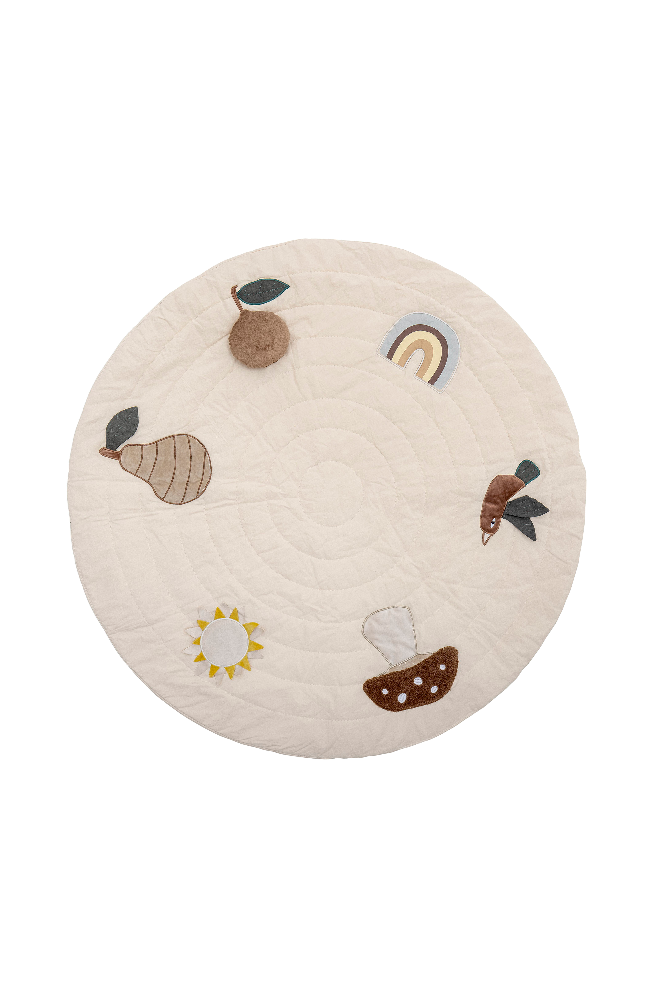 Bloomingville MINI Agnes on pieni leikkimatto, jonka suloiset hahmot kannustavat lasta liikkumaan ja tutkimaan. Appelsiini ääntelee painettaessa ja päärynän lehdet kahisevat kosketettaessa. Matossa on monta pehmeää pintaa, joita lapsen on ihana koskettaa. Matossa on utuiset värit, jotka sopivat kodin kaikkiin huoneisiin. Leikkimatto on myös täydellinen lahja uusille vanhemmille. Halkaisija 100 cm.