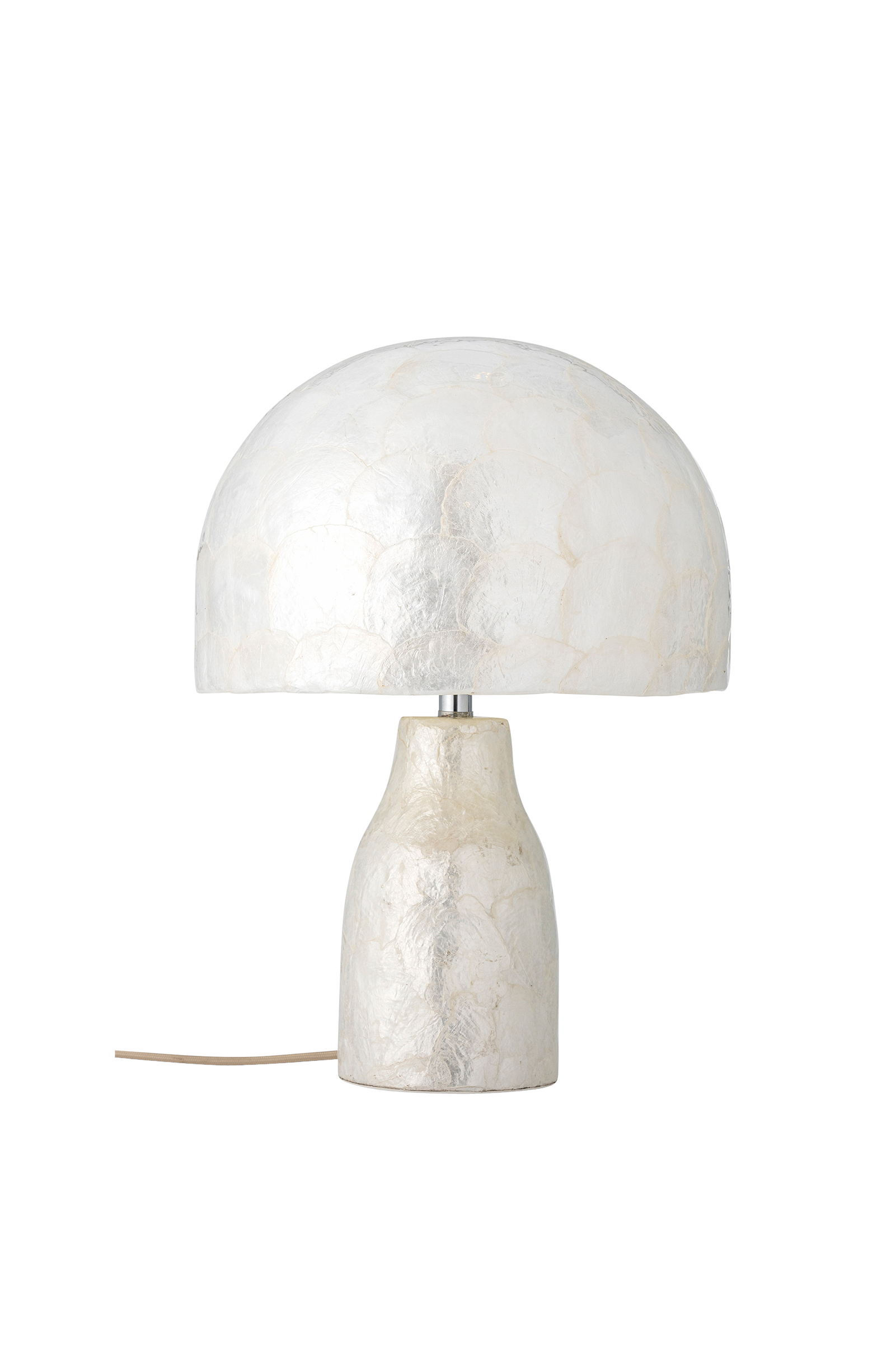 Bloomingvillen Adria-pöytävalaisimessa on kupolin muotoinen varjostin ja pyöristetty jalusta, jossa on helmiäisvärinen viimeistely ja hienovaraisia korostuksia. Capiz-kuoresta valmistetussa pinnassa on kerroksellisia kuvioita. Tuote on valmistettu luonnonmateriaaleista - vaihtelua voi esiintyä, mikä tekee jokaisesta kappaleesta ainutlaatuisen.