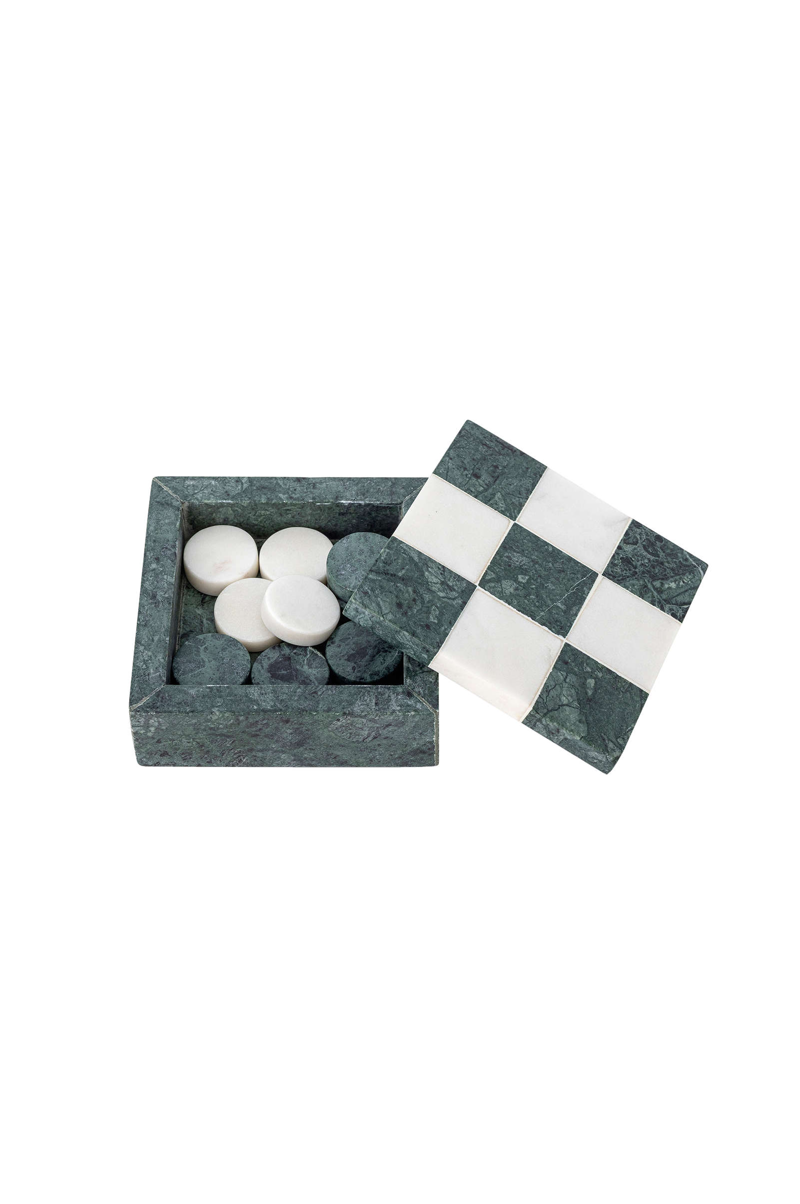 Bloomingvillen Aske tic-tac-toe on kiillotetusta marmorista valmistettu koristeellinen pelisarja, jossa on ruudullinen kansi. Pyöreitä pelikappaleita säilytetään laatikon sisällä. Tuote on valmistettu luonnollisesta mateiralista - vaihtelua voi esiintyä, mikä tekee jokaisesta palasta ainutlaatuisen.