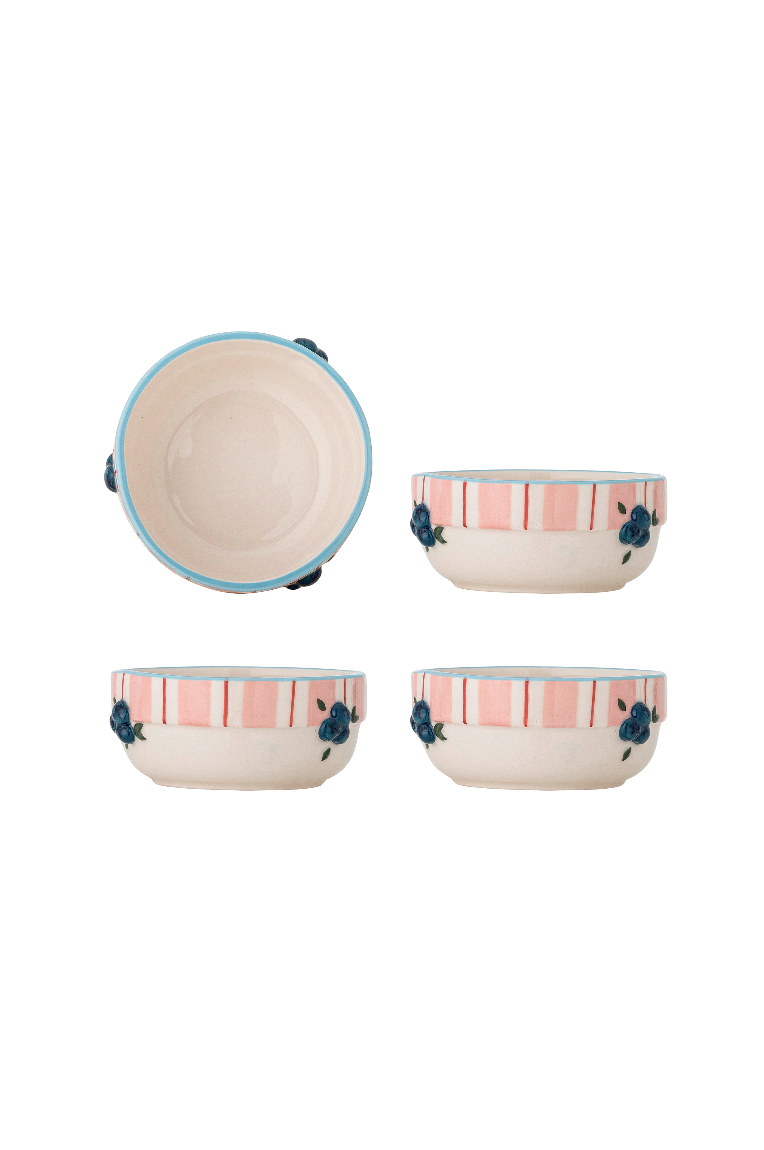 Bloomingvillen Carry kulho on neljän kivitavarakulhon sarja, jossa on pystyraitoja ja vastakkaisia kukkayksityiskohtia. Jokaisessa kappaleessa on kohokuvioitu, käsin maalattu viimeistely, ja sen rakenne on tuntuva. Kuviossa ja voimakkuudessa voi esiintyä pieniä vaihteluita, mikä tekee jokaisesta kappaleesta ainutlaatuisen.