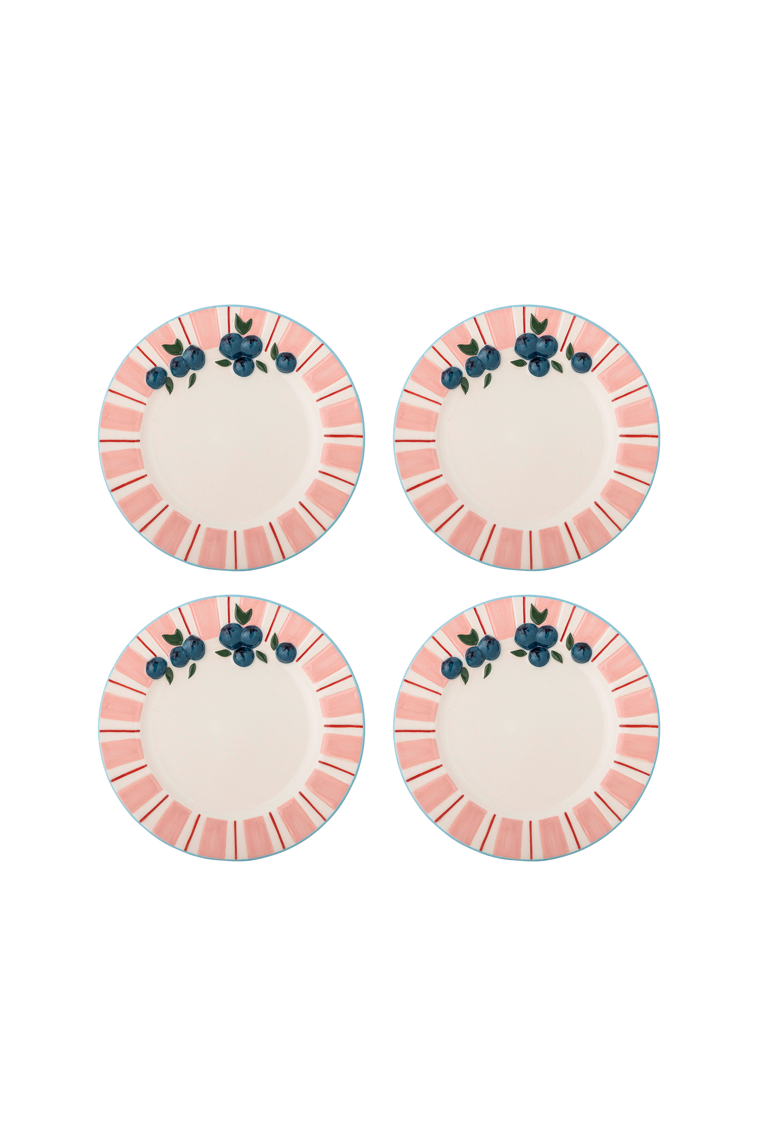 Bloomingvillen Carry -lautanen on neljän kivitavaralautasen sarja, jossa on raitoja, marjoja ja lehtiä sekä yksityiskohtainen reunus. Kohokuvioitu ja käsin maalattu, joten kuvioinnissa ja intensiteetissä voi esiintyä pieniä vaihteluita, mikä tekee jokaisesta kappaleesta ainutlaatuisen.