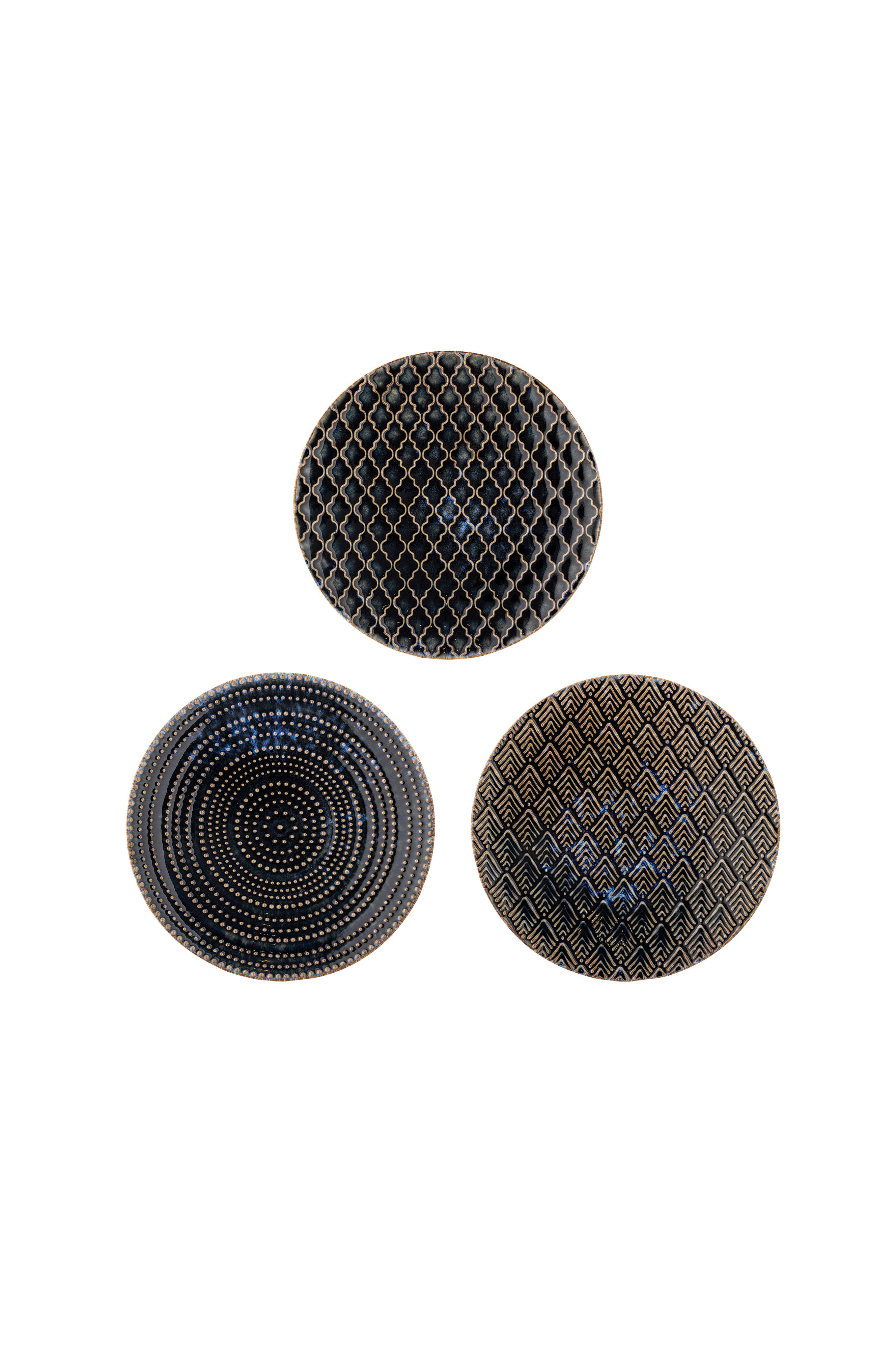 Creative Collectionin elanor lautaset ovat kolmen lautasen setti, joissa jokaisessa on oma erottuva kuvio. Lautasissa on reaktiivinen lasite, joka tekee jokaisesta lautasesta ainutlaatuisen ja erilaisen kuin muut. Käytä sarjaa salaattien tai muiden ruokien tarjoiluun tai luo luova pöytäasetelma sekoittamalla niitä muiden elementtien kanssa. Mitat: d21xh2 cm, 3 kpl.