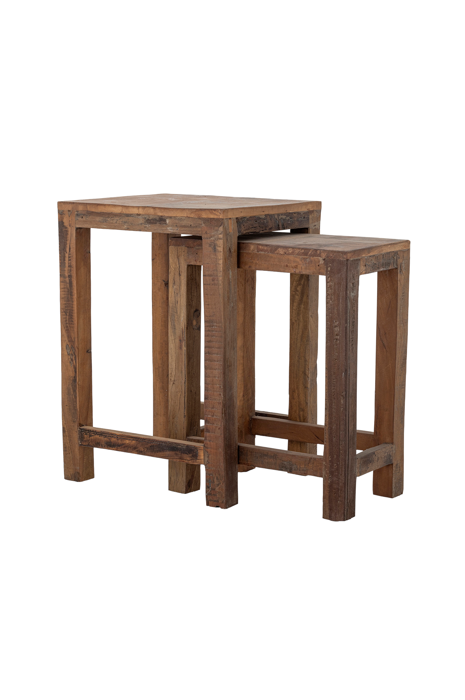 Creative Collectionin Galen-sivupöytä on kahden pöydän setti, joka on valmistettu vanhasta puusta ja jossa on vahattu viimeistely. Kummassakin kappaleessa on suorat jalat ja hienovaraisesti vaihteleva pinta, jossa on näkyviä jyviä ja oksia. Tuote on valmistettu luonnonmateriaaleista - vaihtelua voi esiintyä, mikä tekee jokaisesta kappaleesta ainutlaatuisen.