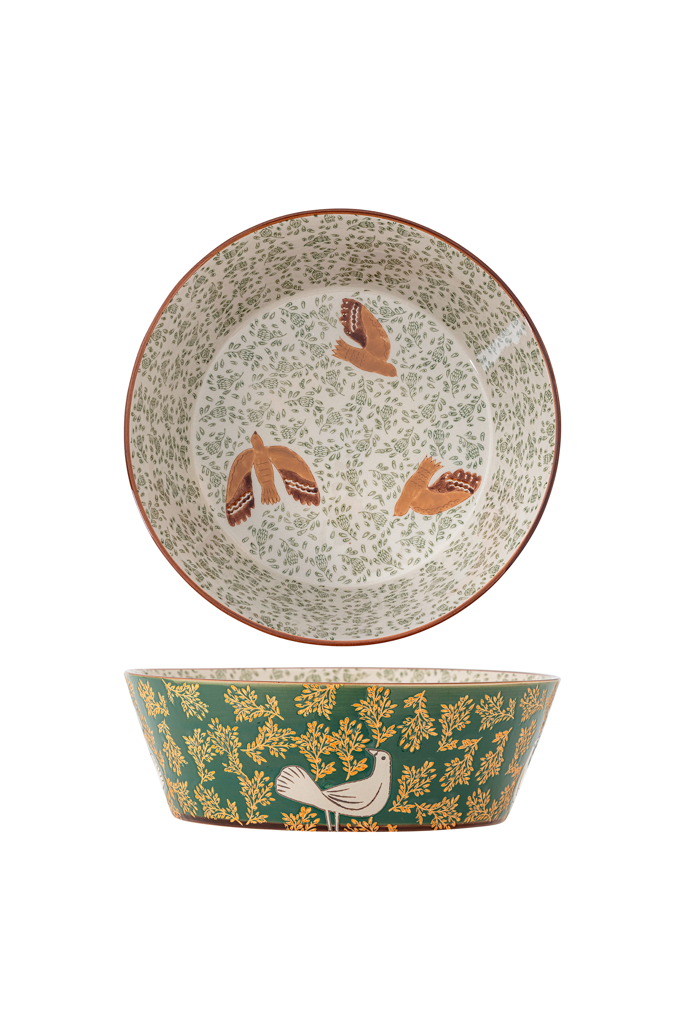 Bloomingvillen Hezha kulho on kivitavarakulho, jossa on käsin maalattu viimeistely. Ulkopuolella on oksia, joissa on kukkayksityiskohtia ja lintukuvio, kun taas sisäpuolella on lehtiä ja kolme lintua lennossa. Kuviossa ja voimakkuudessa voi esiintyä pieniä vaihteluita, mikä tekee jokaisesta kappaleesta ainutlaatuisen.