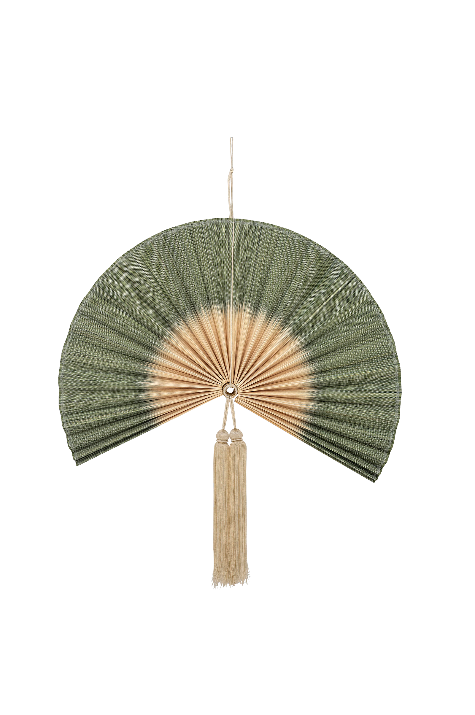 Bloomingvillen Jaime-seinäkoriste on bambusta valmistettu koristeellinen kappale, jossa on laskoksia, jotka siirtyvät keskelle, jossa on tupsukoriste ja silmukka ripustamista varten. Valmistettu luonnonmateriaaleista - vaihtelua voi esiintyä, mikä tekee jokaisesta kappaleesta ainutlaatuisen.
