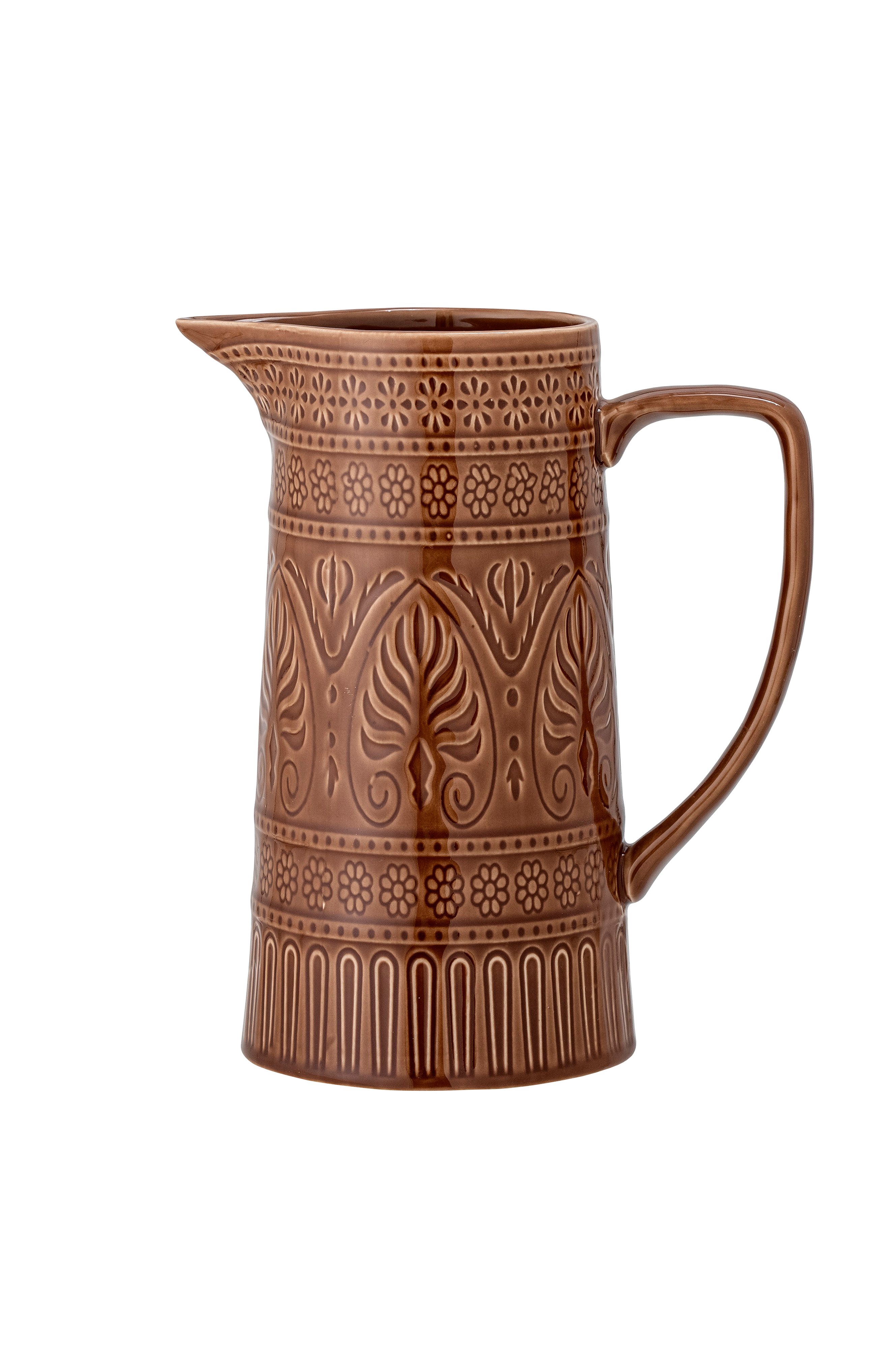 Bloomingvillen Rani-kannu on ainutlaatuinen tuote, jonka vahva ja lämmin väripaletti luo kodikkaan tunnelman. Kannu on ruskean väristä kivitavaraa, ja luonnollisen lasitteen vuoksi tuotteissa voi esiintyä värieroja. Kestää konepesun.