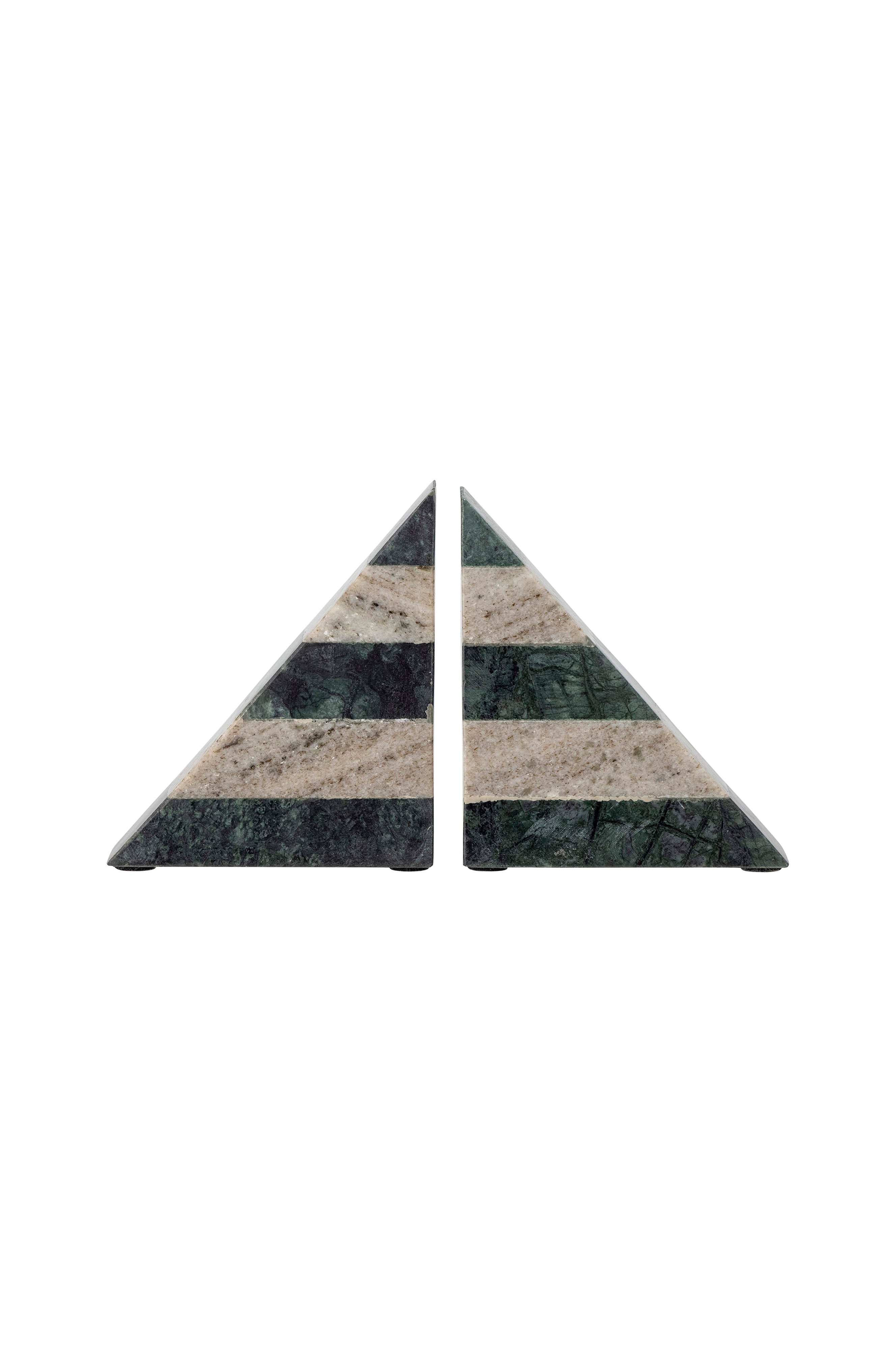 Bloomingvillen Abir-kirjatuet ovat kolmion muotoiset ja valmistettu vihreästä ja beigestä marmorista. Marmori on luonnonmateriaali, joten jokainen kirjatuki on ainutlaatuinen ja sävyiltään ja kuvioiltaan erilainen. Käytä kirjatukina tai koriste-esineinä. P12xK14xL5 cm, 2 kpl.