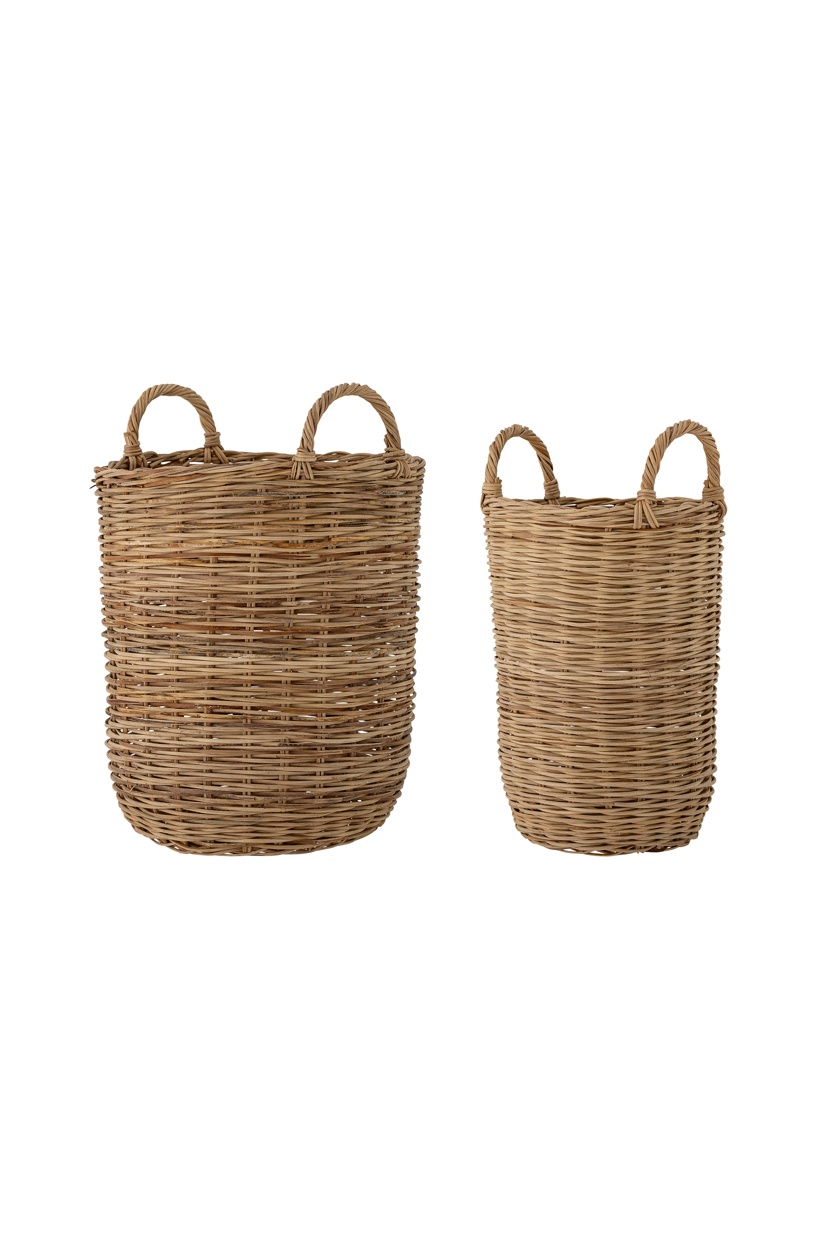 Bloomingville Sede -korisetti, jossa kaksi erikokoista rottinkikoria. Erikokoiset korit ovat erittäin monikäyttöiset, koska niissä voi säilyttää monia erilaisia tavaroita. Kaikkea aina pikkutavaroista viltteihin. Koreja voi käyttää myös kukkaruukkuina. Korien luonnollinen materiaali tuo huoneeseen orgaanista ja rentoa tunnelmaa riippumatta siitä, mihin tarkoitukseen käytät niitä. Mitat: Halkaisija 27, korkeus 49 cm. Halkaisija 37, korkeus 52 cm.