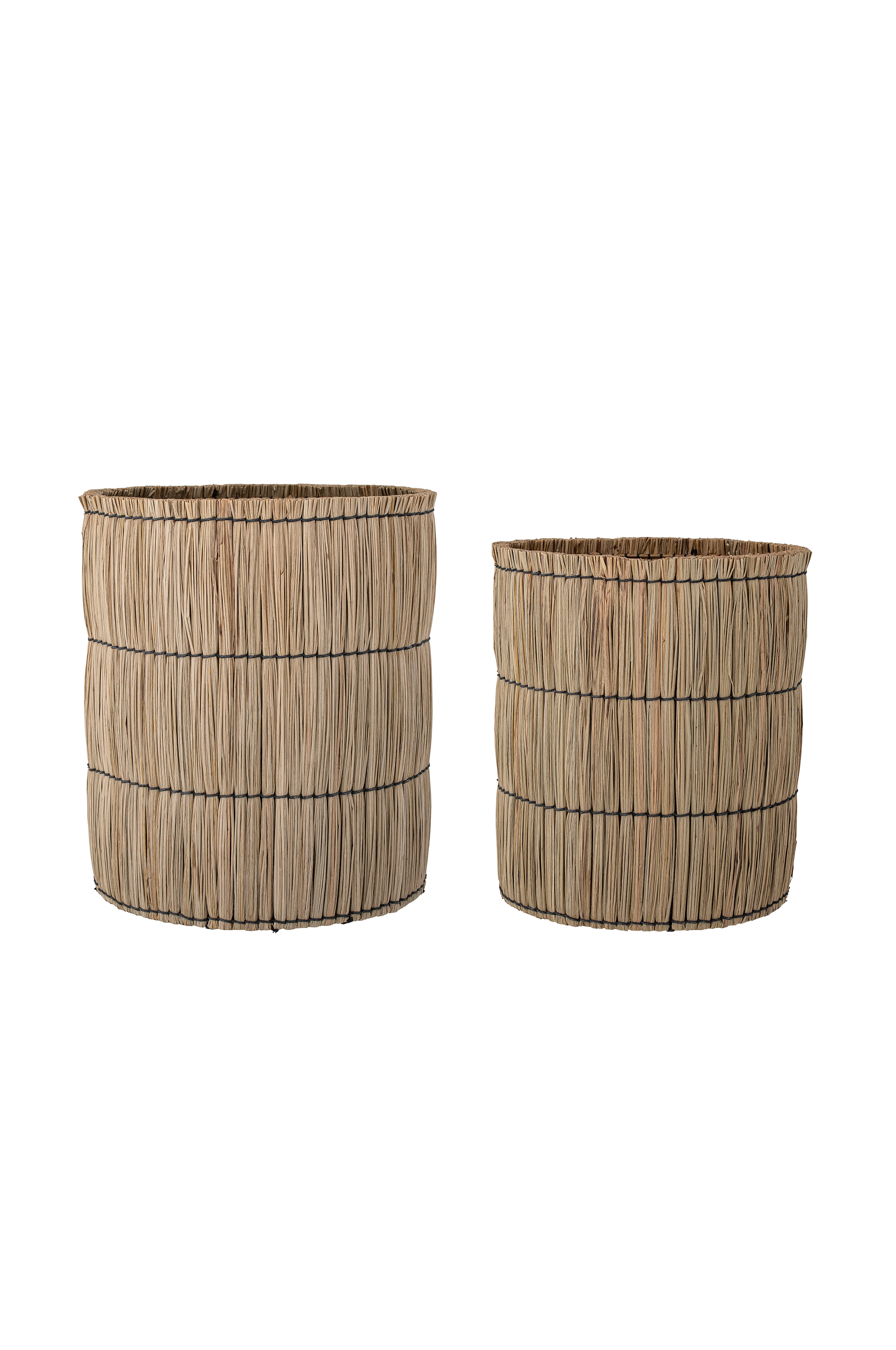 Bloomingville Edit -korisetti, jossa kaksi kaunista erikokoista koria. Korit on valmistettu käsin luonnonmateriaalista. Kaksi pientä rautaista yksityiskohtaa. Täydelliset koristeina ja säilytyskoreina ulkona. Mitat: Ison korin halkaisija 38,5 cm, korkeus 42,5 cm. Pienen korin halkaisija 33,5 cm, korkeus 37 cm.