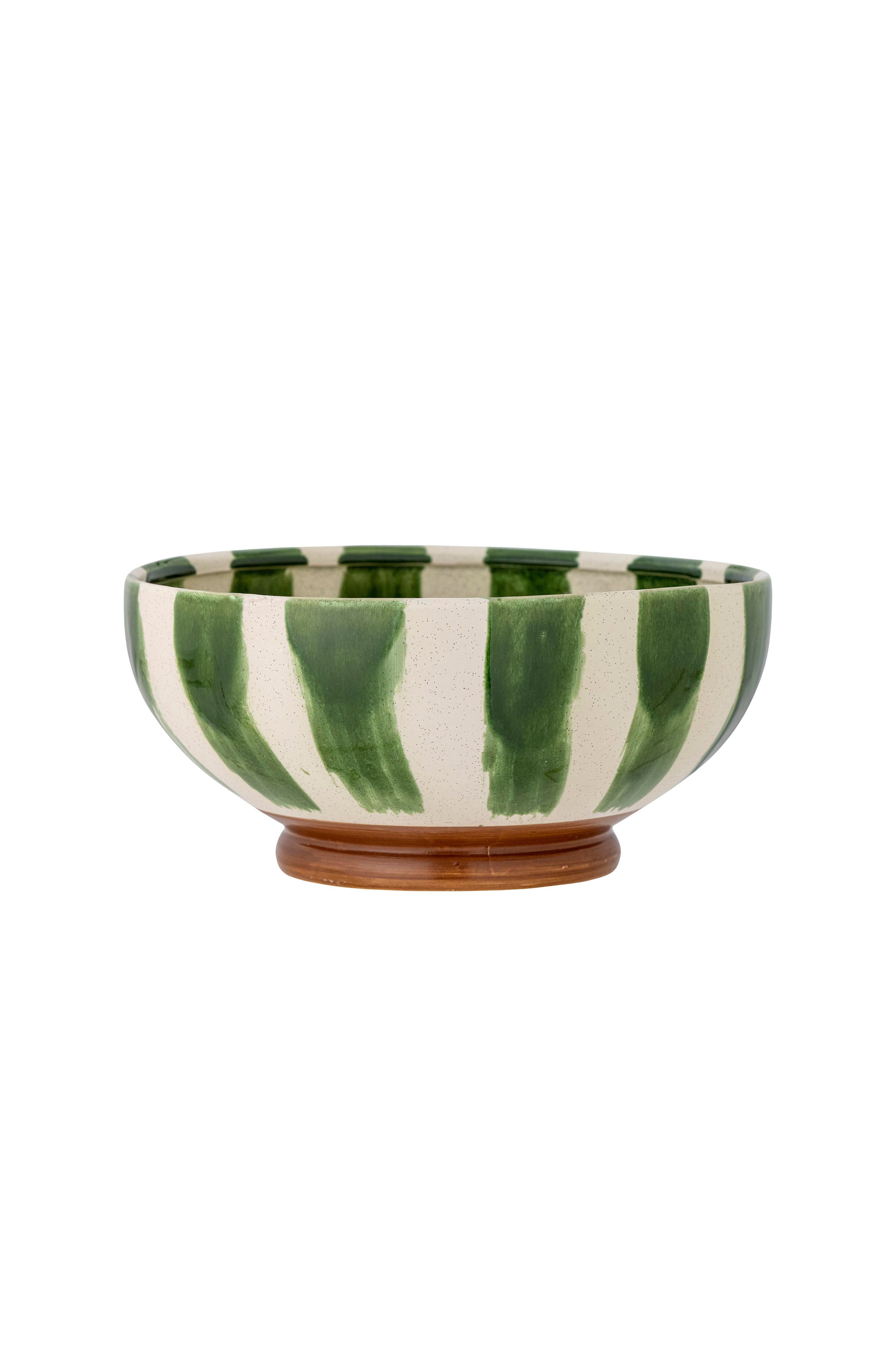 Creative Collectionin Shakti-kulho on valmistettu kivitavarasta, ja siinä on käsinmaalatut vihreät raidat ja ruskea pohja. Käytä kulhoa koristeena tai ruokien tarjoiluun. Käsinmaalatuissa kulhoissa voi esiintyä pieniä eroavaisuuksia.