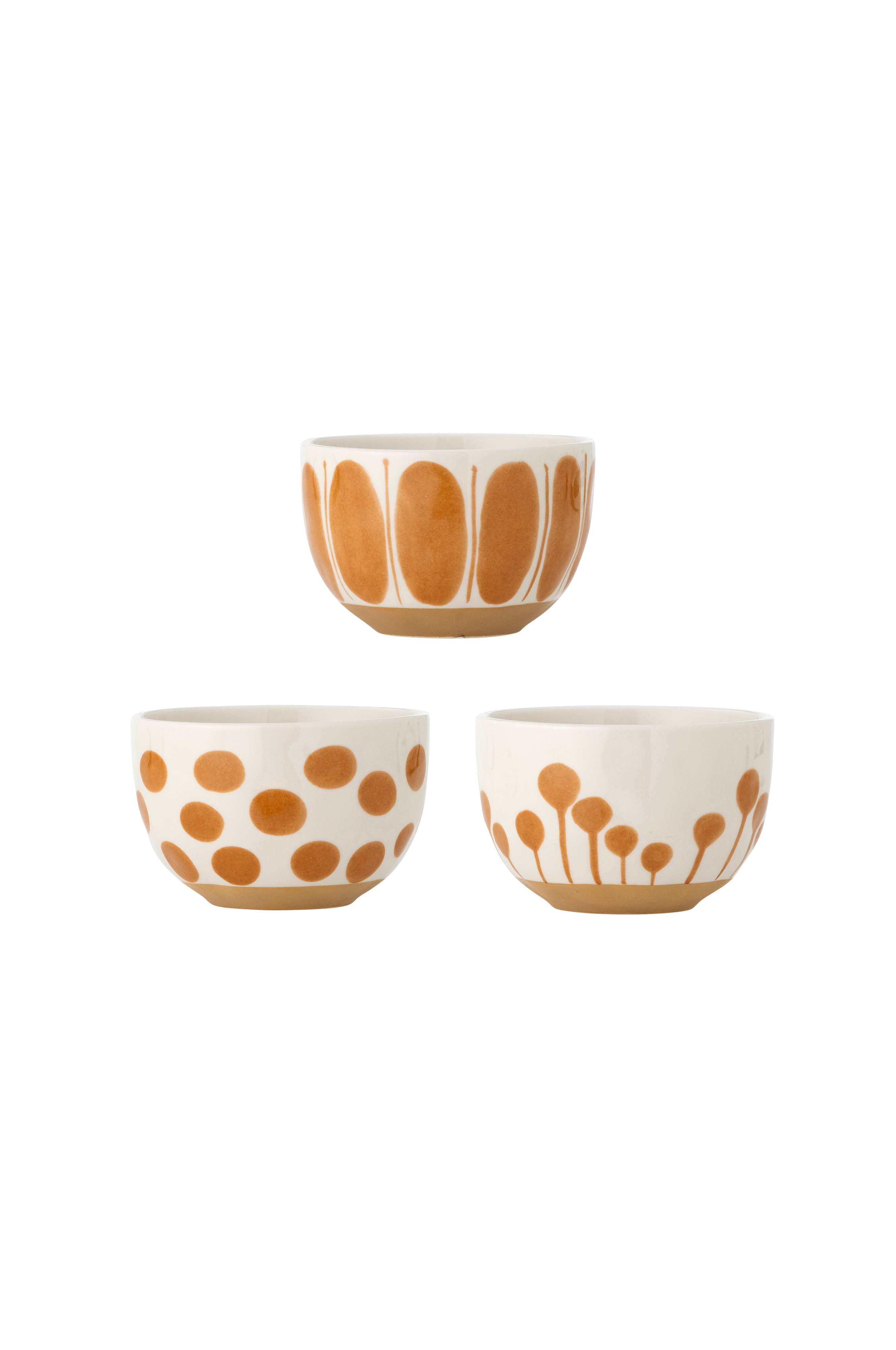 Creative Collectionin linora kulhot ovat 3 tyylikkään kivitavarakulhon sarja, joissa jokaisessa on ainutlaatuisia oranssin sävyisiä kuvioita. Lasittamaton pohja antaa kulhoille luonnollisen ja rustiikkisen ilmeen, joka luo kauniin kontrastin koristeellisen muotoilun kanssa. Kulhot sopivat erinomaisesti pienten ruokien, kuten välipalojen tai jälkiruokien tarjoiluun, ja ne toimivat myös hyvin koristeellisina kulhoina hiustarvikkeille tai avaimille. Mitat: D12,5xH8 cm, 3 kpl:n setti.