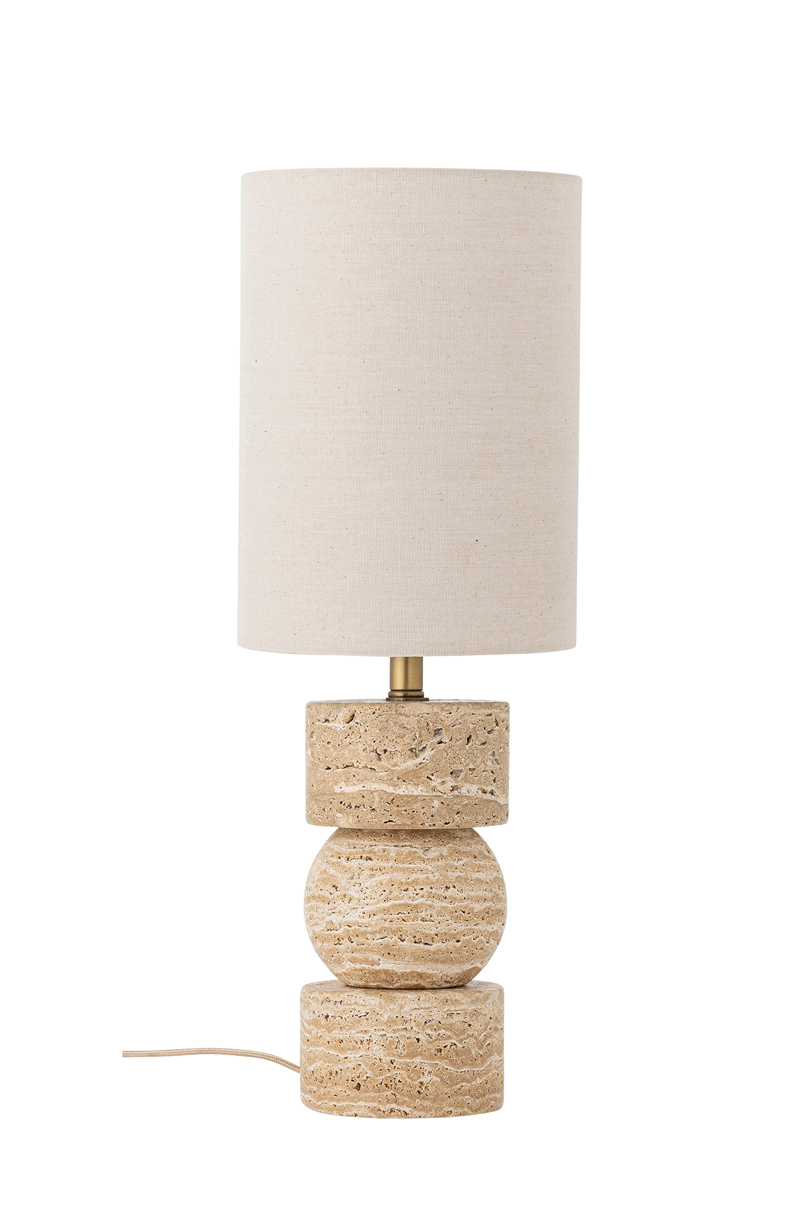 Bloomingvillen Marci-pöytävalaisimessa on veistoksellinen travertiinijalusta, jossa on luonnollista vaihtelua ja erottuva pintarakenne. Se on yhdistetty pellavavarjostimeen, joka täydentää valaisimen harmonista ilmaisua. Luonnonmateriaaleista johtuen vaihtelua voi esiintyä.