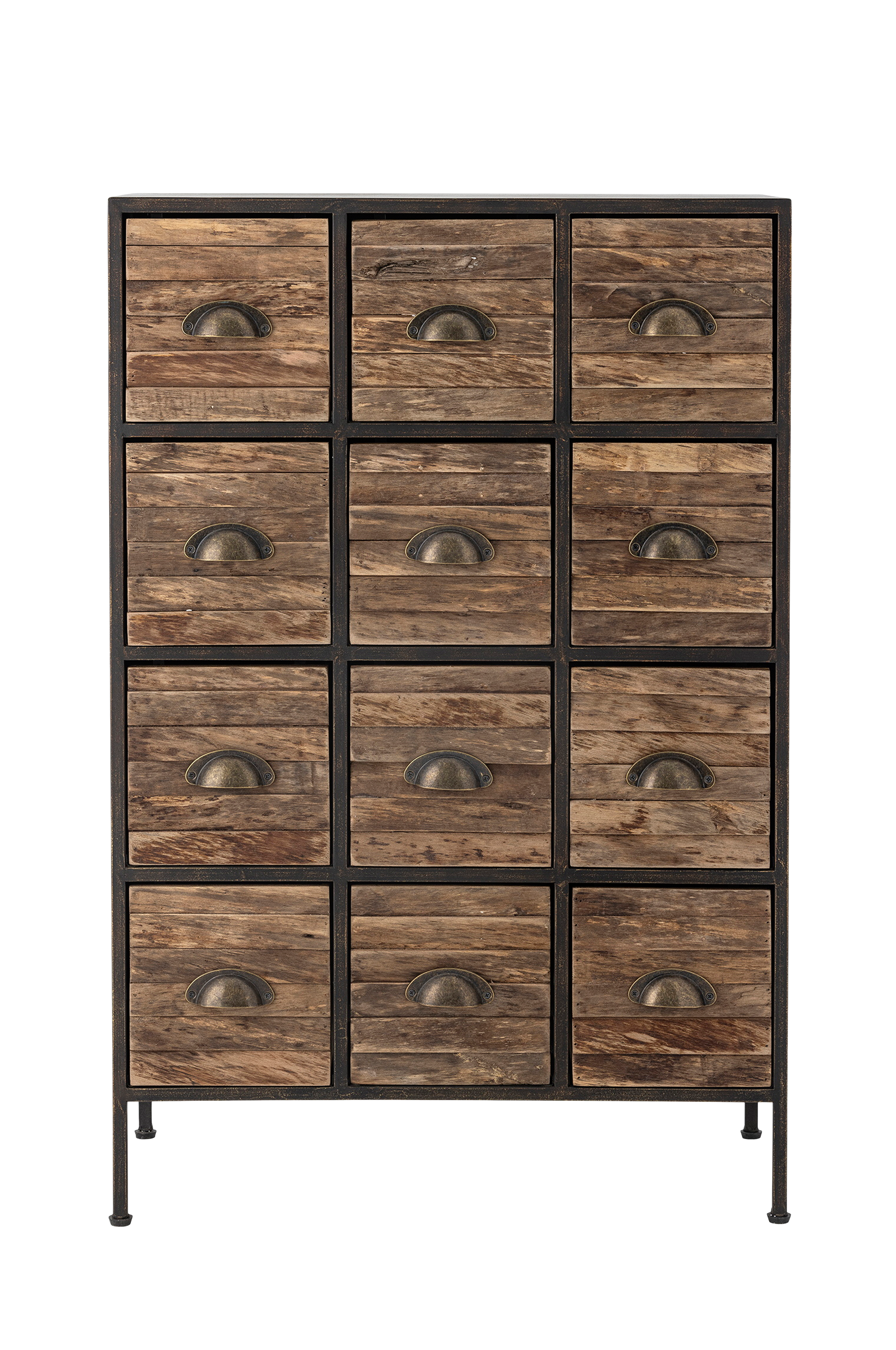 Matteo drawer fra creative collection er en stilfuld og praktisk opbevaringsløsning med et rustikt touch. Skabet har 12 rummelige skuffer, hver med et flot håndtag, der fremhæver det distressed finish. Med sin robuste metalramme kombinerer møblet industrielt design med naturlige trædetaljer, hvilket gør det ideelt til både moderne og traditionelle hjem. Dette skuffemøbel can holde orden i alt fra småting til kontorartikler. Mitat: L60,5xH92xW33,5 cm.