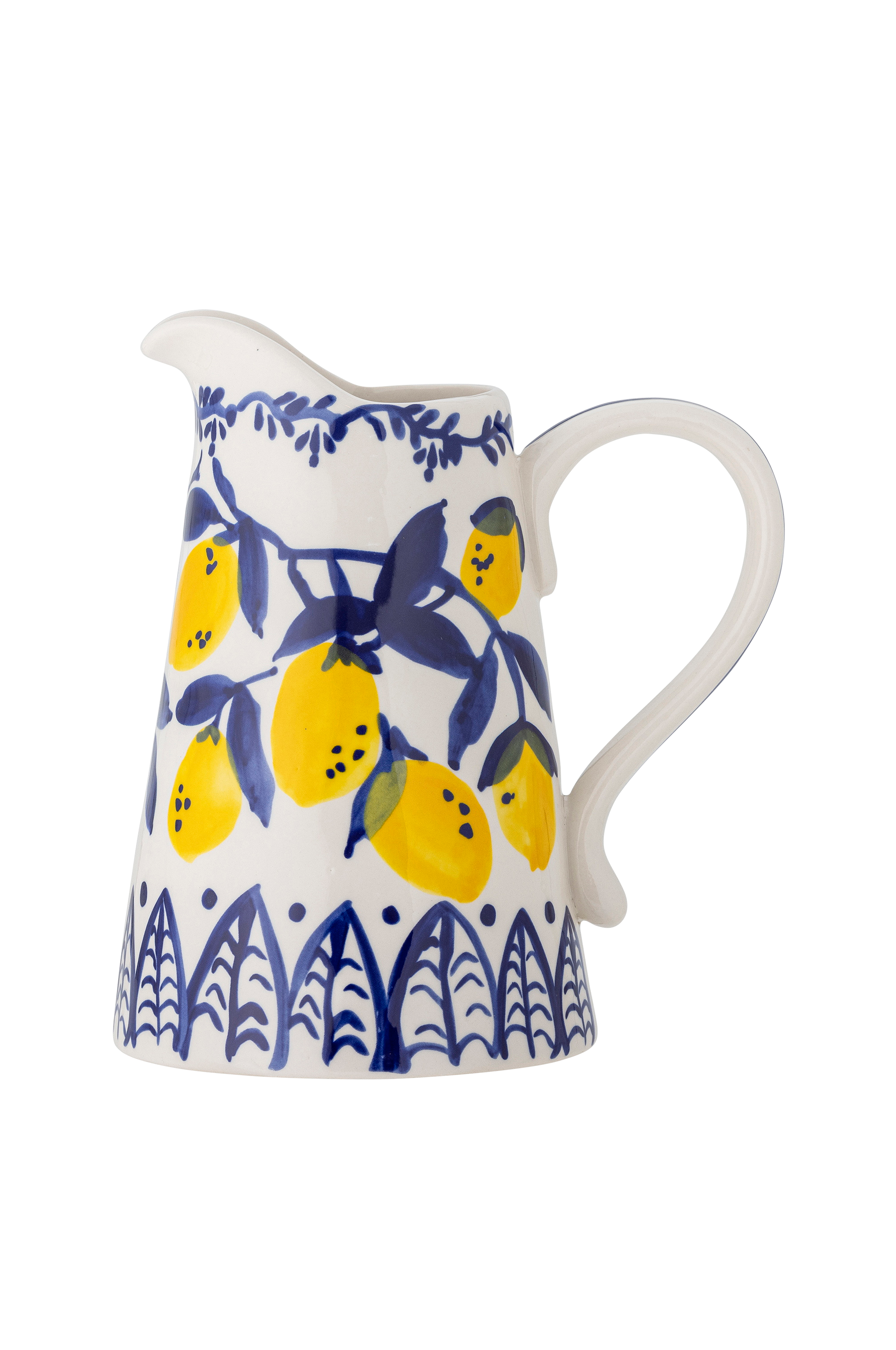 Creative Collectionin maxima kannu on kaunis kivitavarakannu. Se on käsin koristeltu eloisalla keltaisten sitruunoiden ja sinisten lehtien kuviolla. Käsin maalatun koristelun vuoksi jokainen kannu vaihtelee hieman ulkonäöltään, mikä tekee jokaisesta kappaleesta todella ainutlaatuisen. Sopii täydellisesti lisäämään ripauksen väriä ja välimerellistä tunnelmaa pöytäsi kattaukseen. Mitat: D12xH22 cm