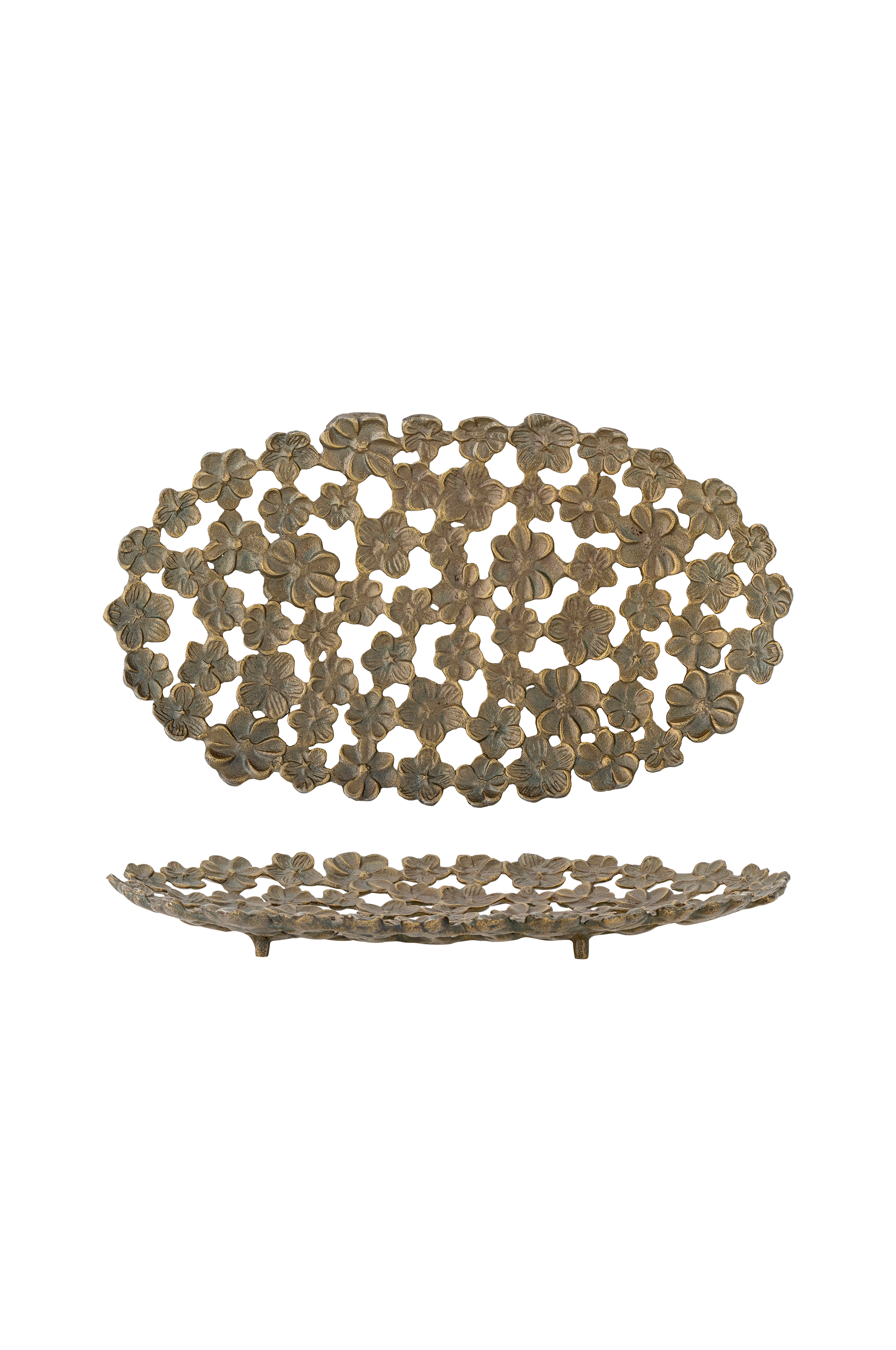Creative Collectionin micha tarjotin on kaunis alumiininen tarjotin, joka tuo pöytään sekä eleganssia että luonnetta. Tarjotin on koristeltu ainutlaatuisella pienten kukkien kuviolla. Käytä sitä koristeiden esillepanoon tai huomiota herättävänä keskipisteenä ruokapöydässä tai sohvapöydässä. Tämä tarjotin on sekä käytännöllinen että koristeellinen ja tuo tyylikkään lisän mihin tahansa sisustukseen. Mitat: L43,5xH4,5xW25 cm.
