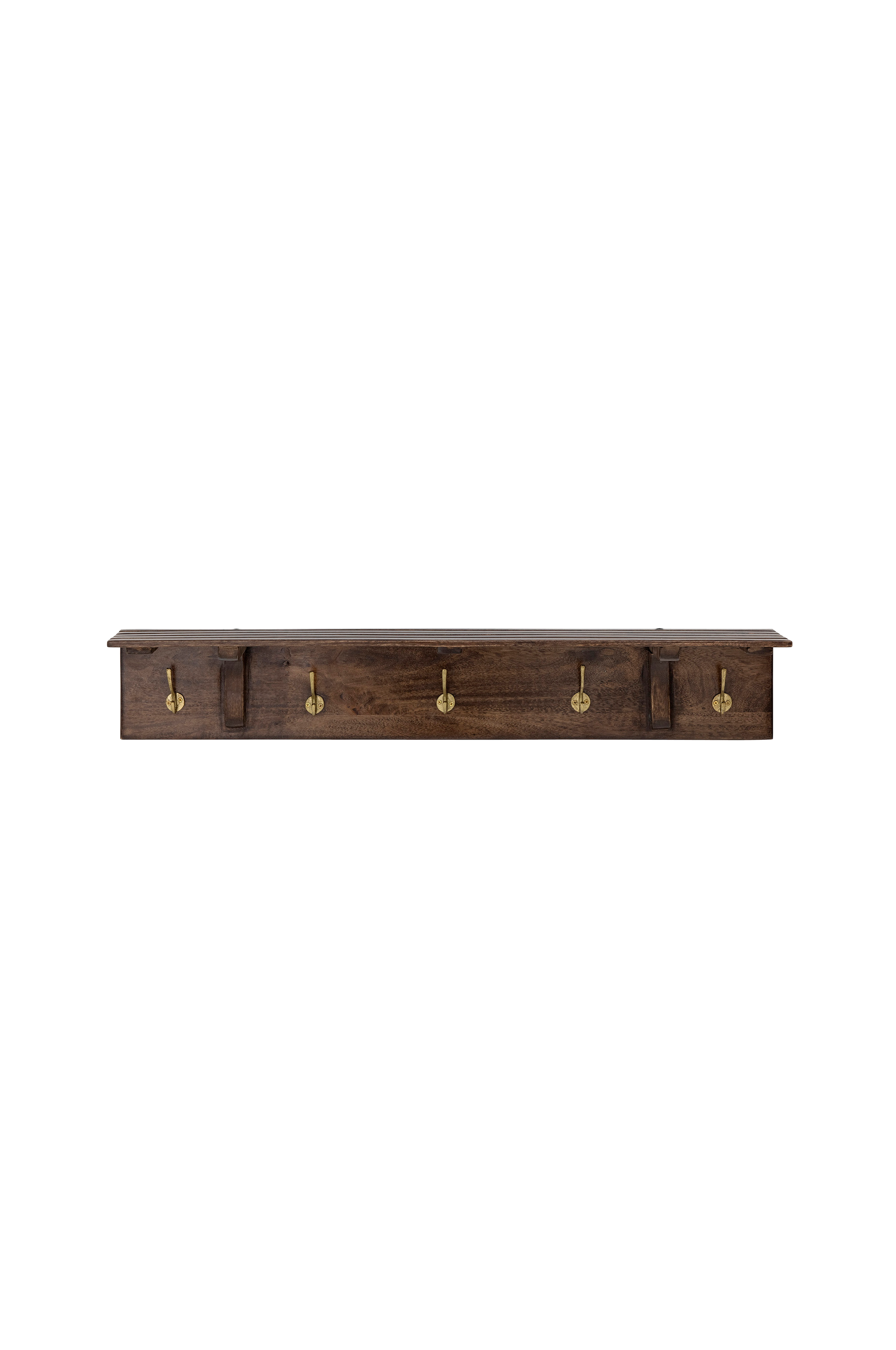 Bloomingvillen mangopuinen Lula -naulakko, jossa kauniit messinkikoukut. Ainutlaatuinen tuote sopii eteiseen takkien ripustamiseen.