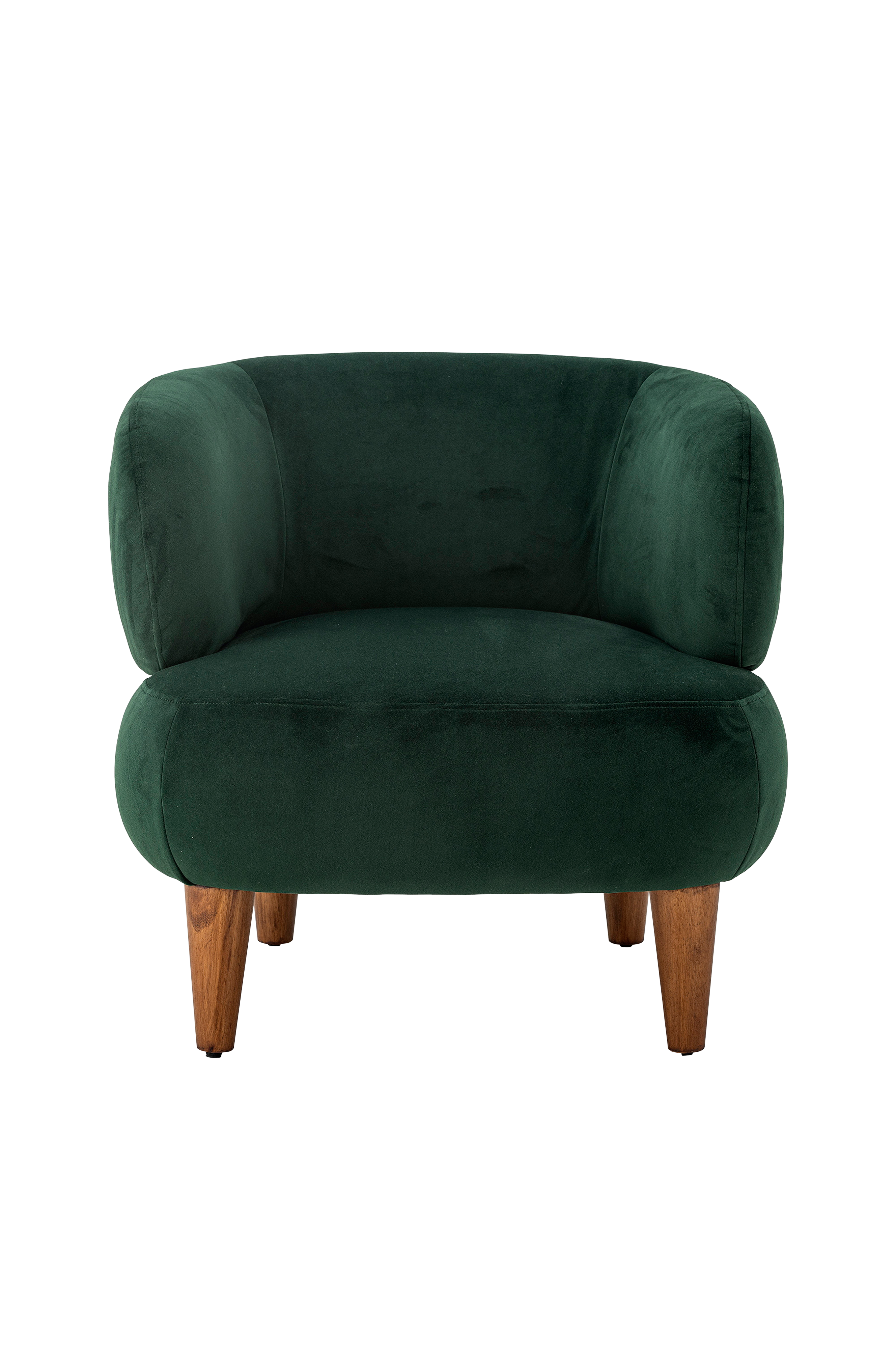 Creative Collectionin ruperta lounge-tuoli on kompakti ja tyylikäs tuoli, joka tuo mukavuutta ja eleganssia mihin tahansa huoneeseen. Se luo syleilevän muotonsa ansiosta viihtyisän tunnelman. Tuoli on verhoiltu kauniilla tummanvihreällä samettikankaalla, joka tuo tuoliin ylellisen ilmeen, ja ruskeaksi värjättyjen kumipuujalkojen ansiosta tuoli näyttää luonnolliselta. Sopii täydellisesti olohuoneeseen tai nurkkaan, jossa voit rentoutua tai lukea kirjaa. Mitat: l70xk70xw78 cm.