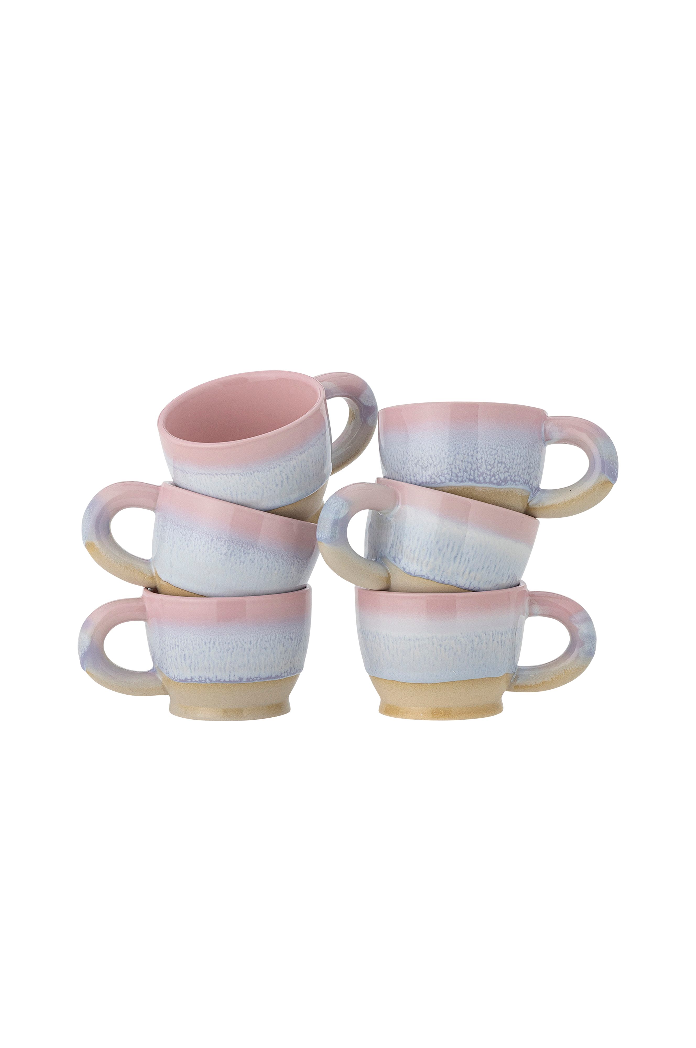 Bloomingvillen safie -muki on valmistettu kivitavarasta, jonka väri on ruusunpunainen pastelli, jossa on violetteja vivahteita. Värikäs muki tuo niin paljon eloa sisustukseen ja se voidaan sijoittaa edullisesti avohyllylle. Lasitteen luonteesta ja käsityönä valmistetusta tuotteesta johtuen värivaihteluita voi esiintyä. Pakkaus 6 kpl. Mukin koko d9,5xh7,5 cm, 300 ml.
