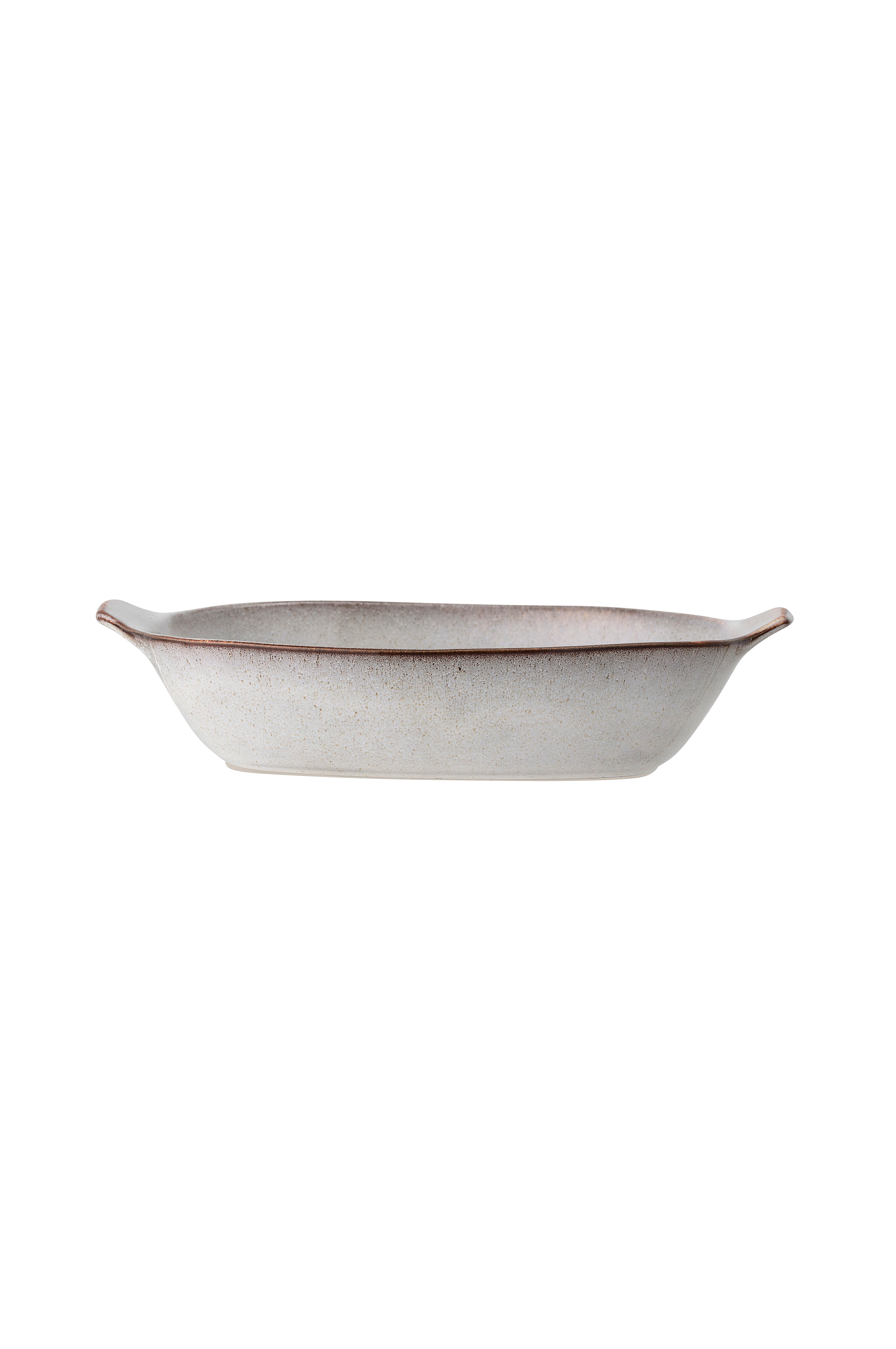 Kivitavarasta käsin valmistettu tarjoilukulho, joka on maalattu luonnollisen sävyisellä värillä ylhäältä alas.