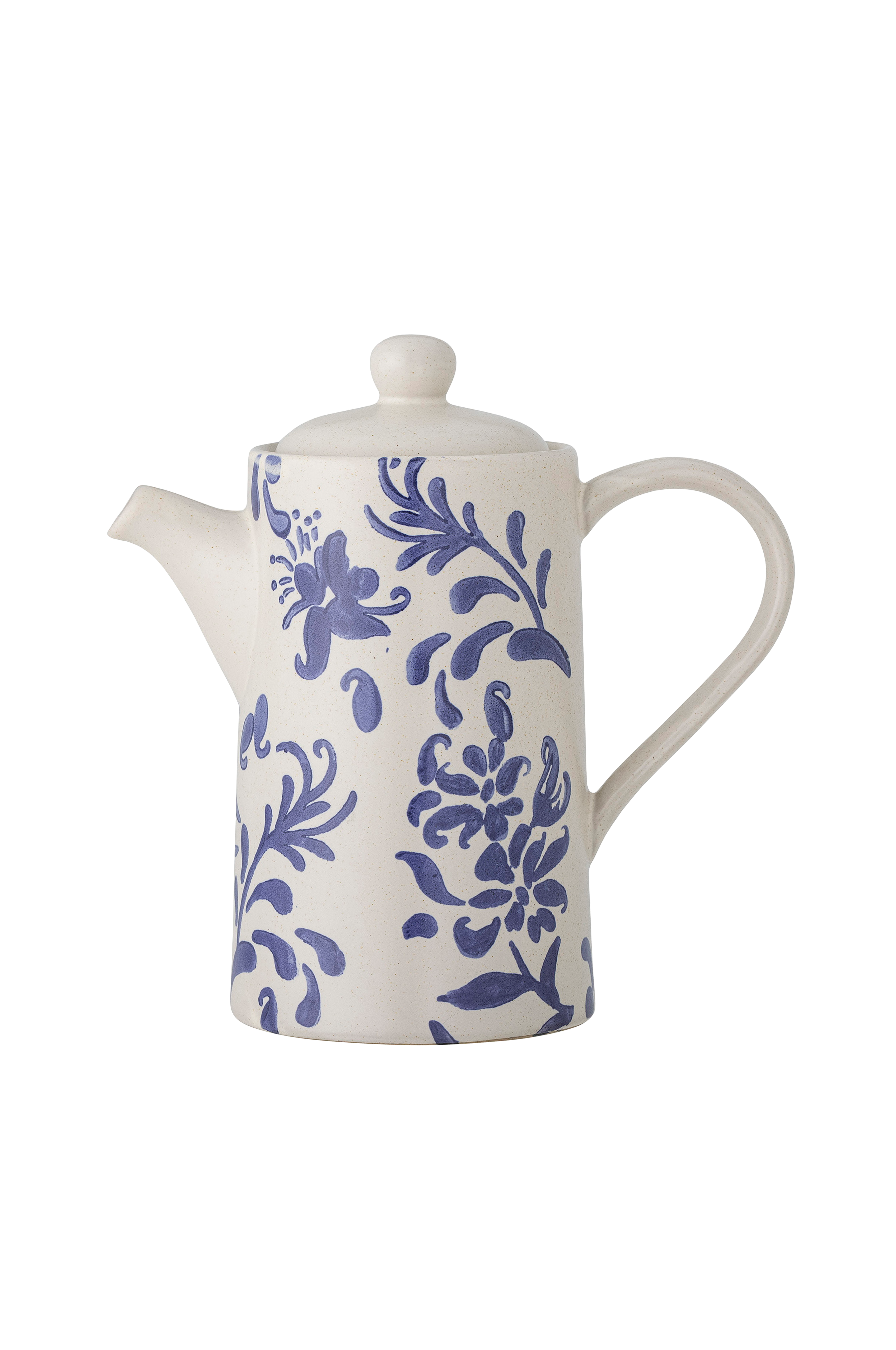 Petunia-teekannu on valmistettu kivitavarasta, ja se on romanttisen vintagehenkinen. Käsinpainettu kuvio koostuu kauniista sinisistä yksityiskohdista valkoista taustaa vasten. Täydellinen sekä aamiaisella että iltapäiväteellä. Jokainen käsin koristeltu tuote on ainutlaatuinen.