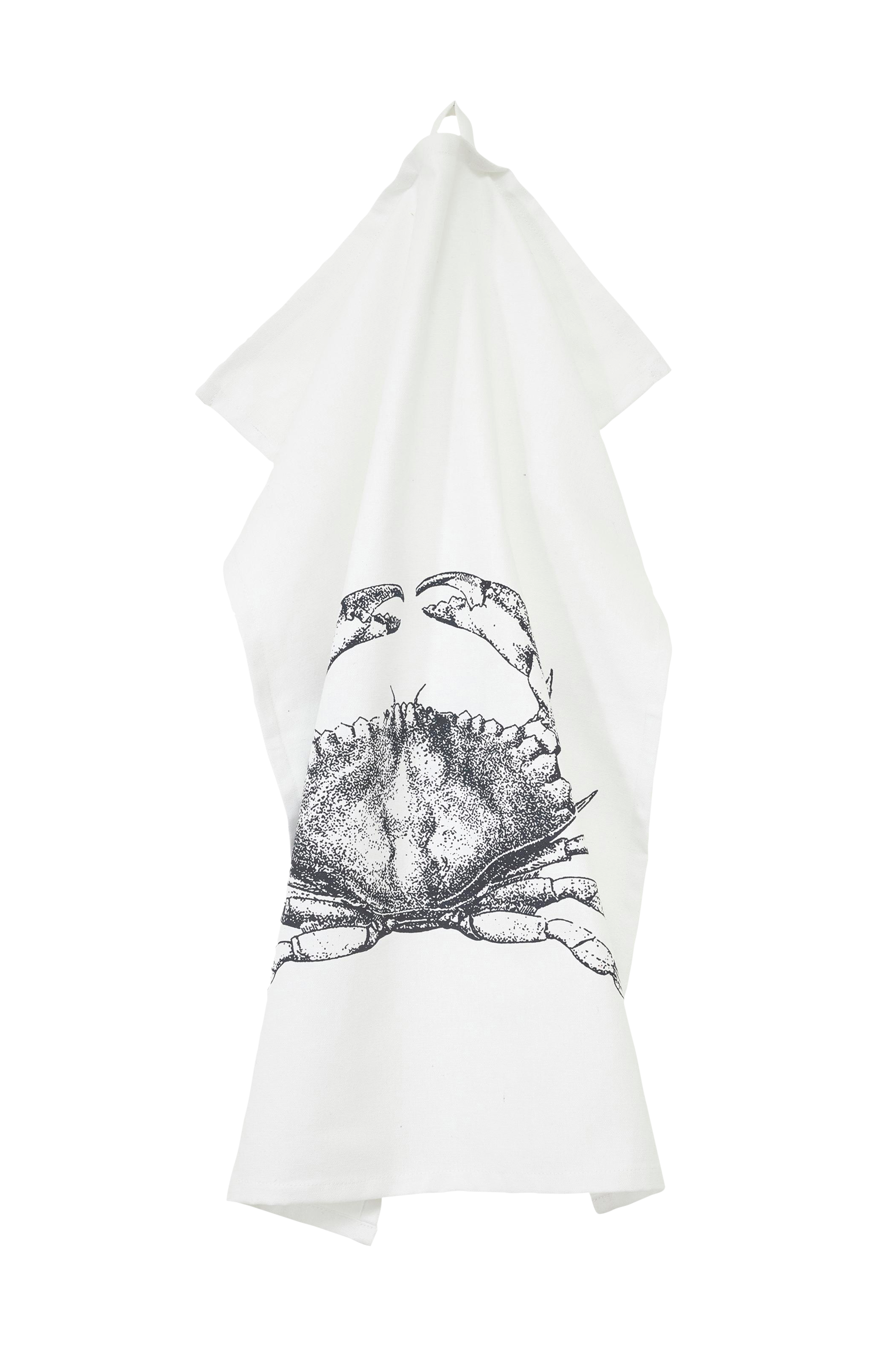 Merihenkinen rapukuvioinen Marius-keittiöpyyhe on viehättävä ja kiinnostava sisustusyksityiskohta keittiöön. Sen värimaailma tuo raikkaan tuulahduksen kesäiseltä merenrannalta.