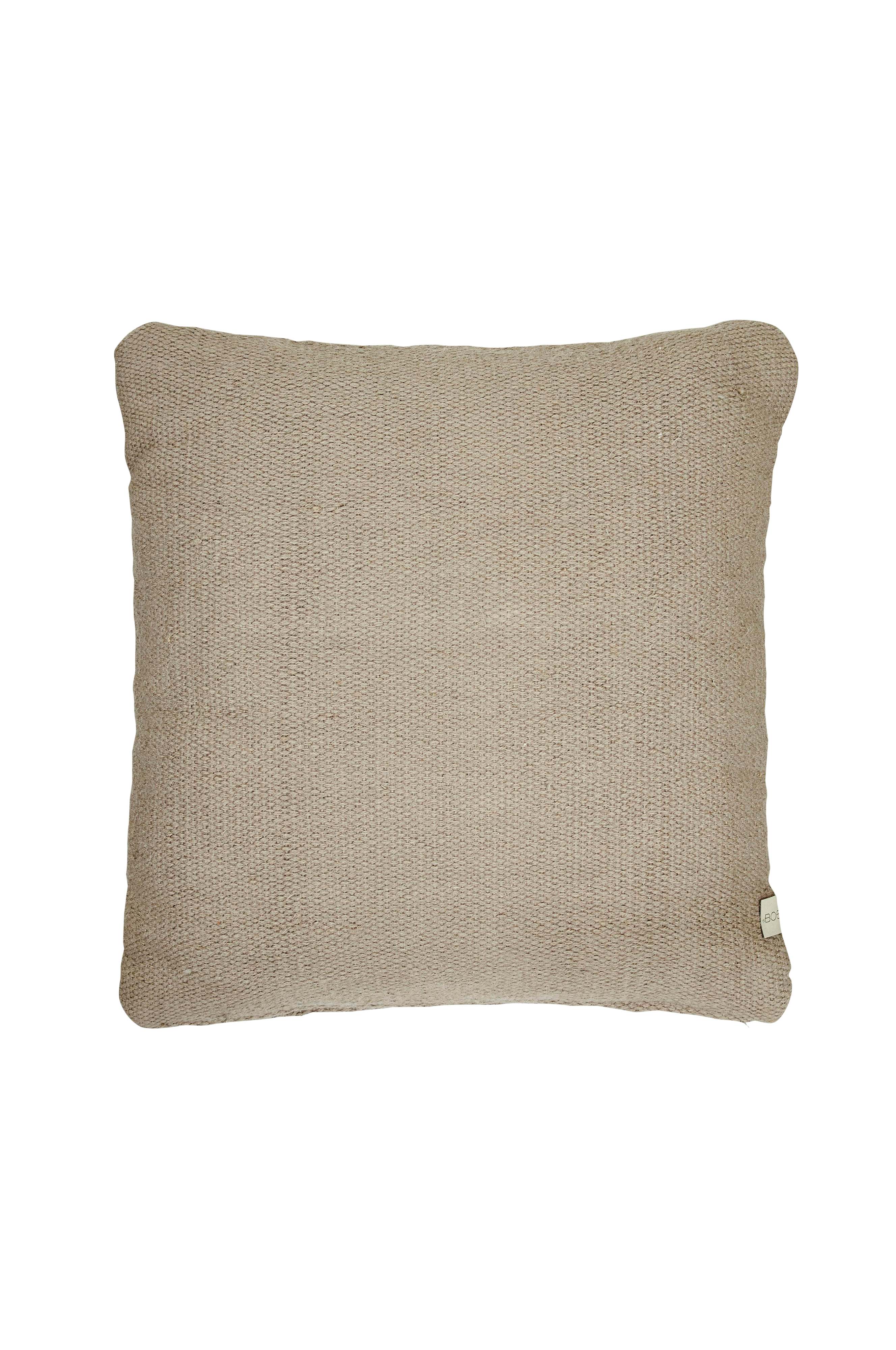 Merida-tyynynpäällinen 100% juuttia, jossa on maanläheiset sävyt.