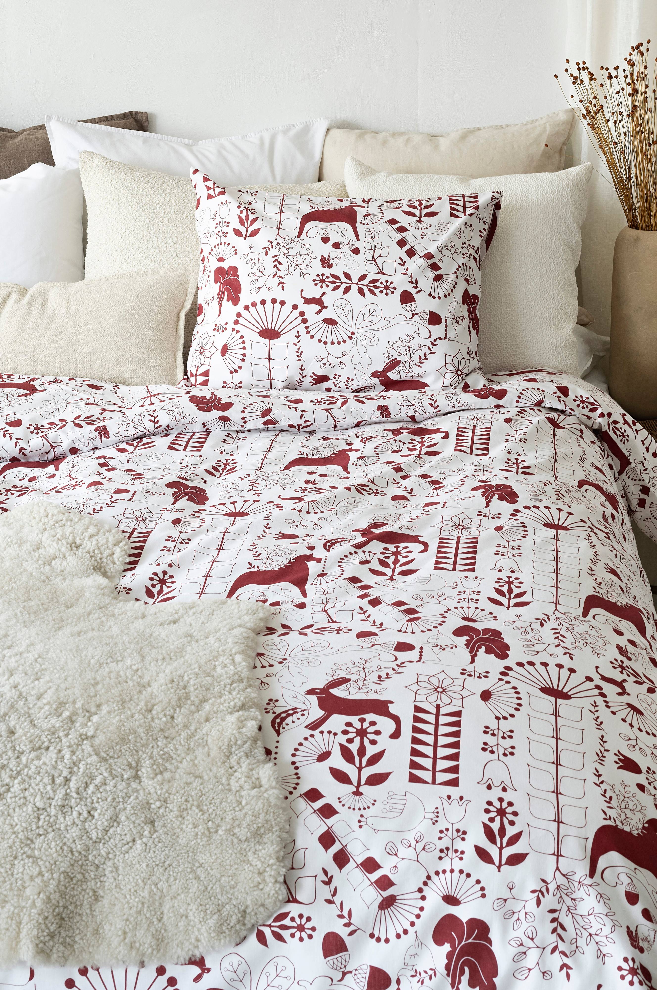Pussilakanasetti, jossa tyynyliina ja pussilakana. Pussilakanasetissä on painettu kuvio, ja se on valmistettu pehmeästä ja miellyttävästä puuvillasta. Borganäs-pussilakanasetistä on saatavana useita erilaisia kuvioita sekä kapean sängyn ja parisängyn koko. Oeko-Tex. 100% puuvillaa